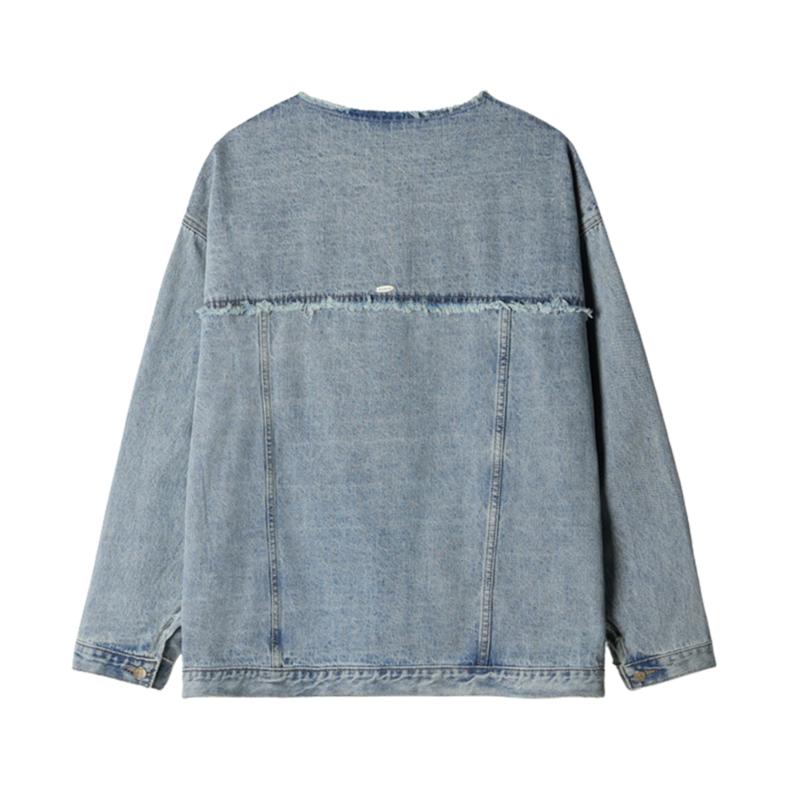 Aviemuah Collarless Denim Trucker Jacket Light Blue