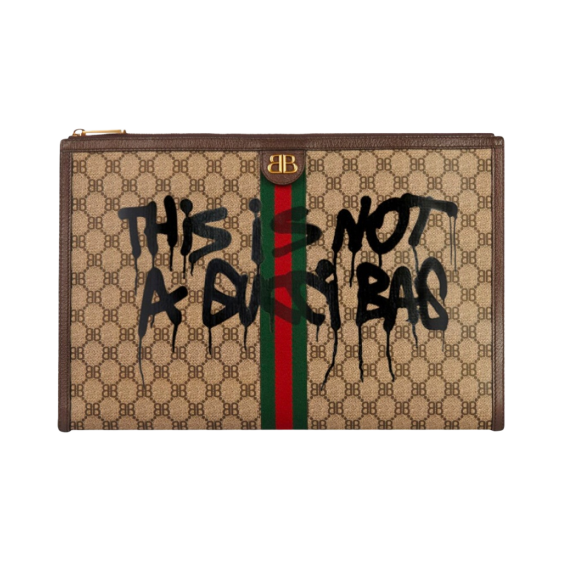 Balenciaga x Gucci The Hacker Project Graffiti Laptop Pouch Coating Canvas Beige