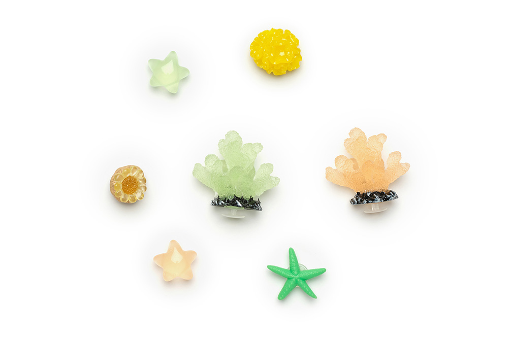 산호와 불가사리에서 영감을 받은 그린톤의 핍 7개로 구성된 세트입니다. 신발 위에 바닷속 보물처럼 반짝이는 포인트를 더해보세요. *신발은 포함되어있지 않습니다.