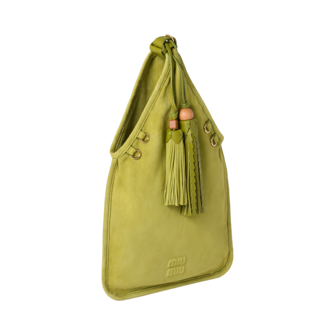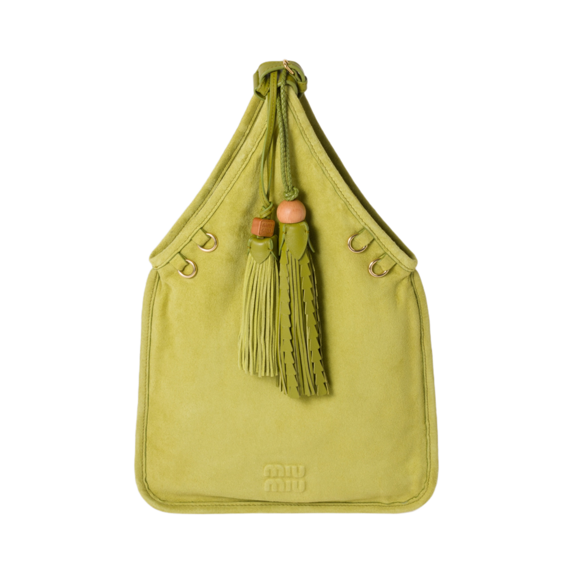 Miu Miu Suede Handbag with Tassels Ivy Green