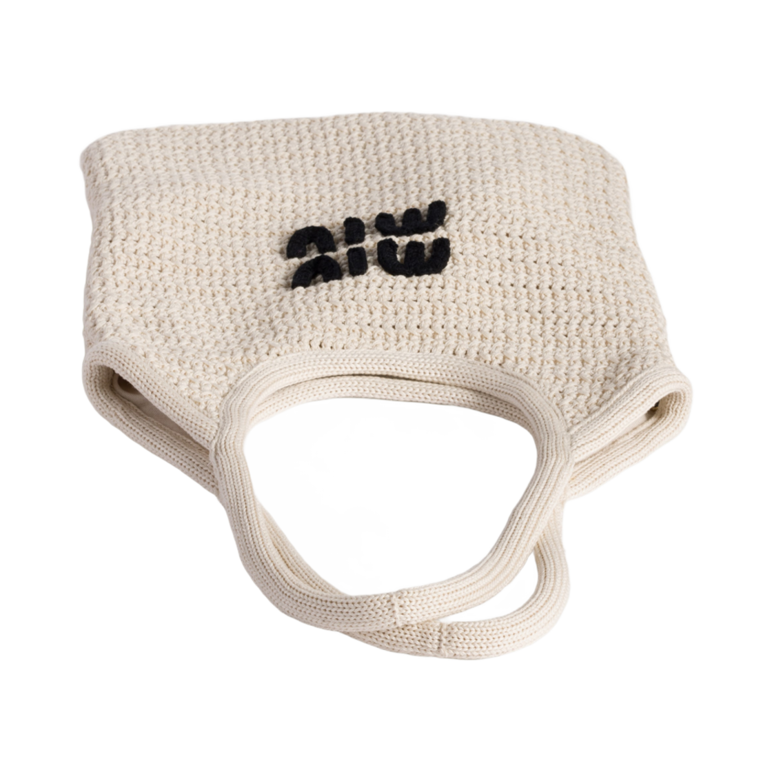 미우 미우 아이비 라피아 이펙트 우븐 토트백 초크 화이트 블랙