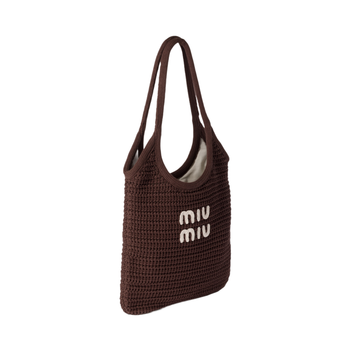 Miu Miu Ivy Raffia Effect Woven Tote Bag Cocoa Chalk White