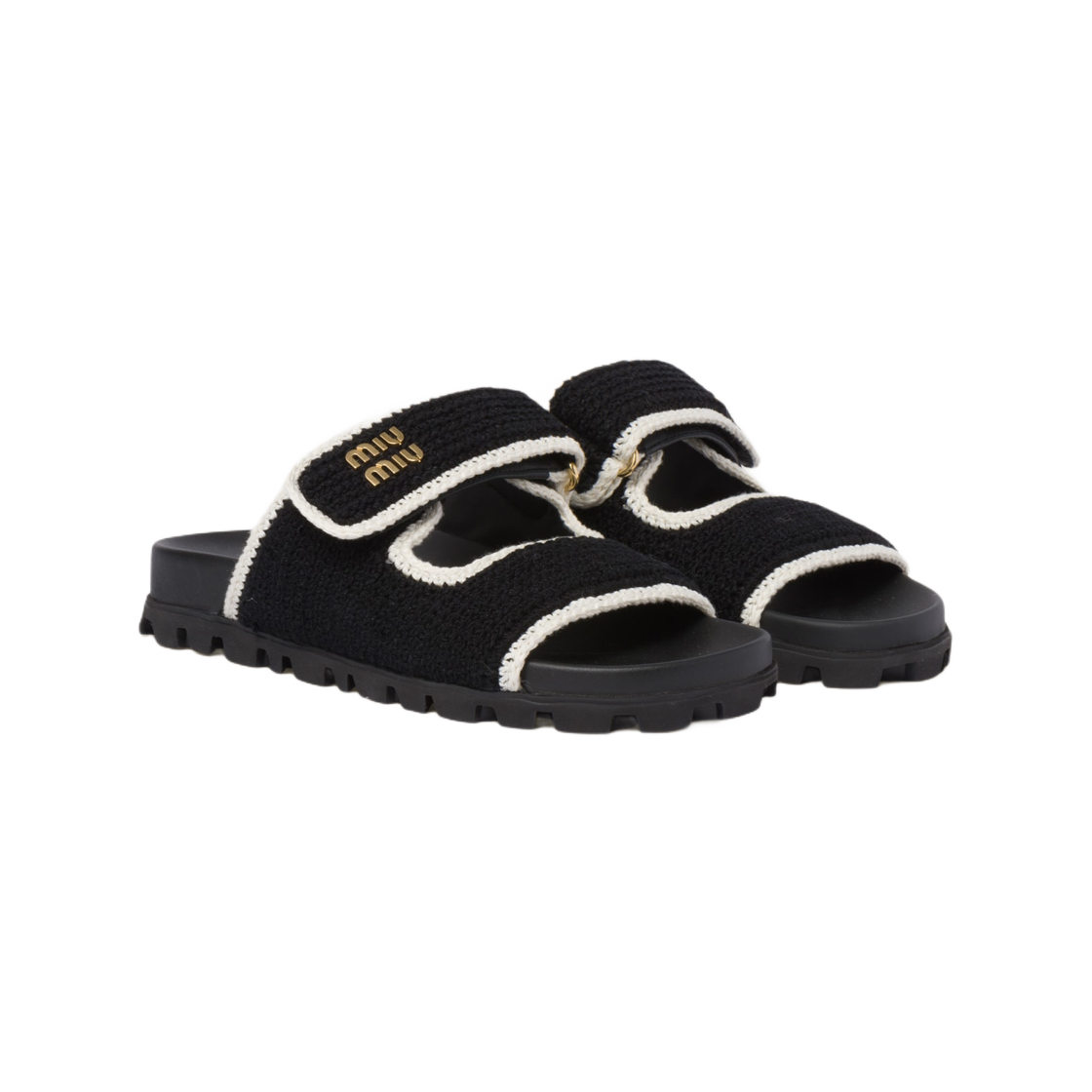 (W) Miu Miu Crochet Knit Slide Black Ivory