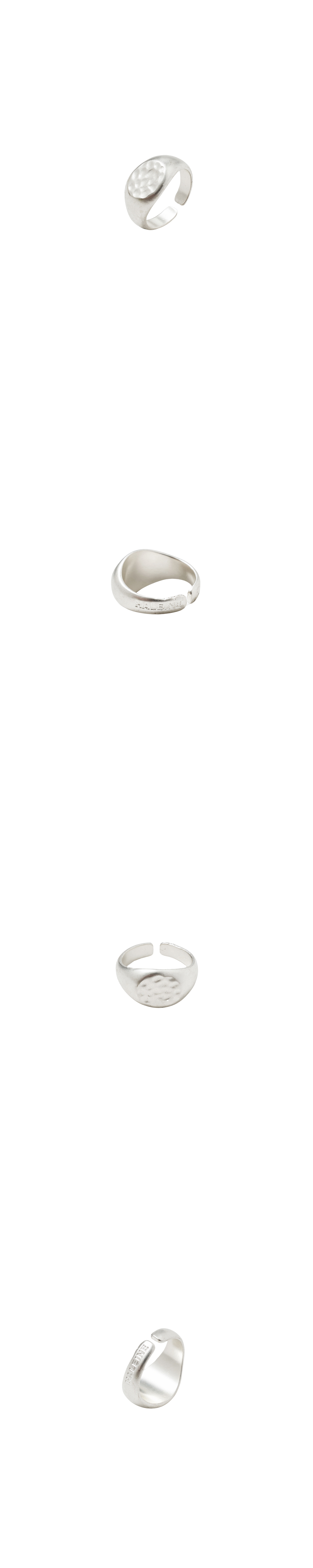 은은한 화이트 실버 톤으로 마감된 링입니다. 상단은 유려한 타원형으로 설계되었으며, 표면에 정제된 텍스처를 더해 구조적인 입체감을 강조했습니다. 단독 착용만으로도 완성도 높은 스타일을 연출할 수 있는 아이템입니다. - DETAIL - 무광 화이트 실버 톤 상단 타원형 텍스처 디테일 미니멀하고 정제된 디자인