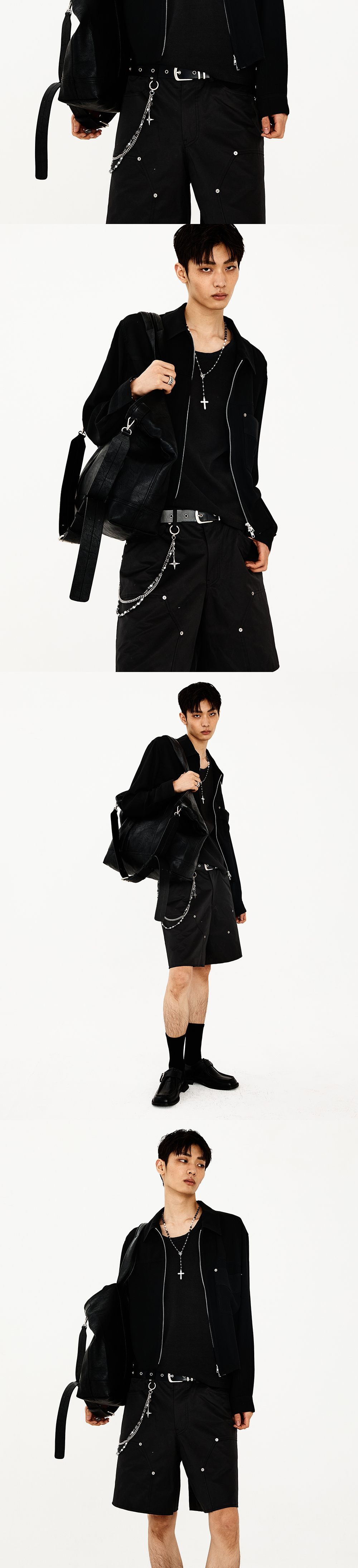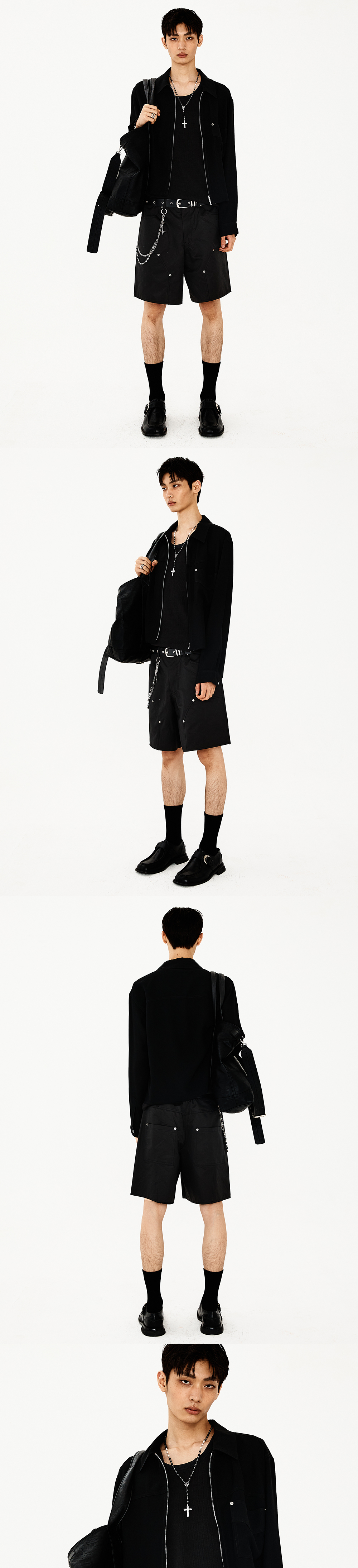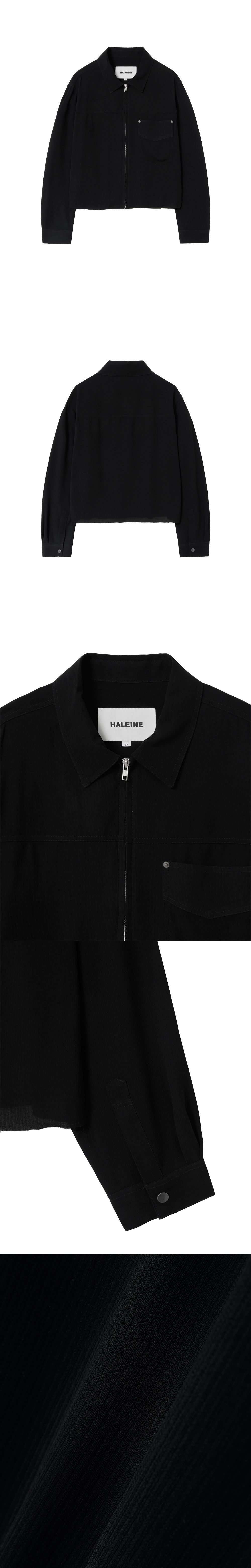 스루한 텍스처의 원단으로 제작한 집업 셔츠입니다. 얇고 가벼운 소재로 한여름에도 착용 가능하며, 전면 지퍼 여밈과 크롭한 기장으로 구조적인 실루엣을 완성합니다. 밑단은 컷오프 디테일로 마감되어 자연스럽고 날렵한 인상을 줍니다. -DETAIL- 크롭 핏 전면 지퍼 여밈 플랩포켓 형태를 가진 패치포켓 컷-오프 처리된 밑단 *밑단의 경우 자연스럽게 올이 풀리며 하단의 봉제선 이상은 풀리지 않습니다* -model- 186cm / 가슴둘레 83cm / 허리둘레 70cm / 엉덩이둘레 90cm - 2사이즈 착용