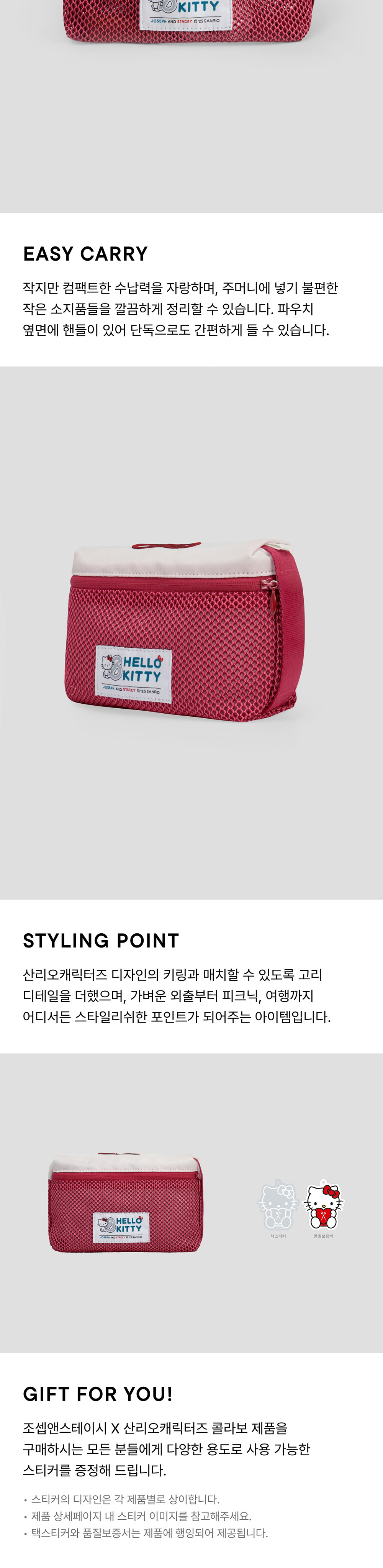 조셉앤스테이시 메쉬 파우치 스몰 헬로키티 레드 화이트