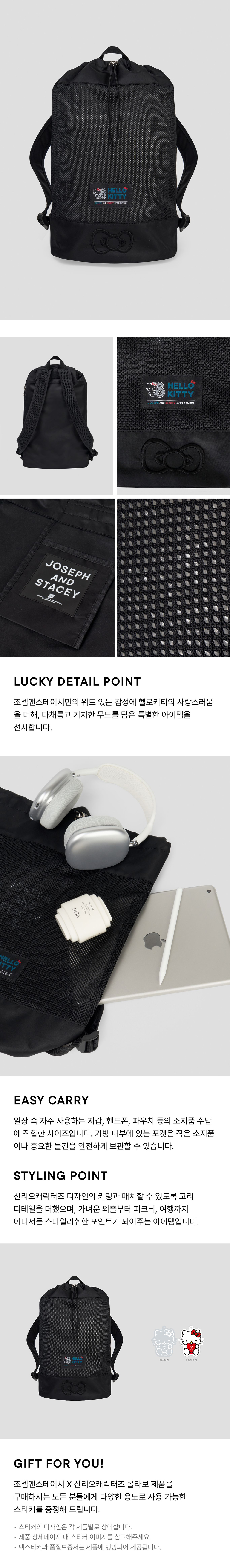 조셉앤스테이시 메쉬 백팩 헬로키티 블랙