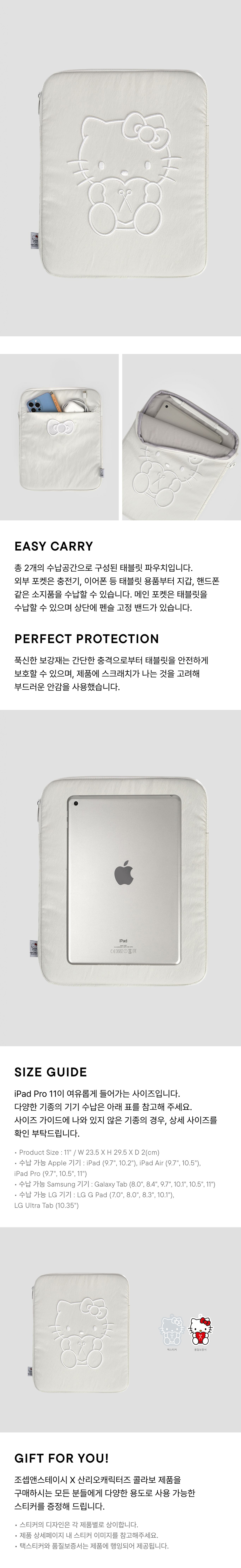 조셉앤스테이시 헤이즈 태블릿 파우치 11인치 헬로키티 블랙 화이트