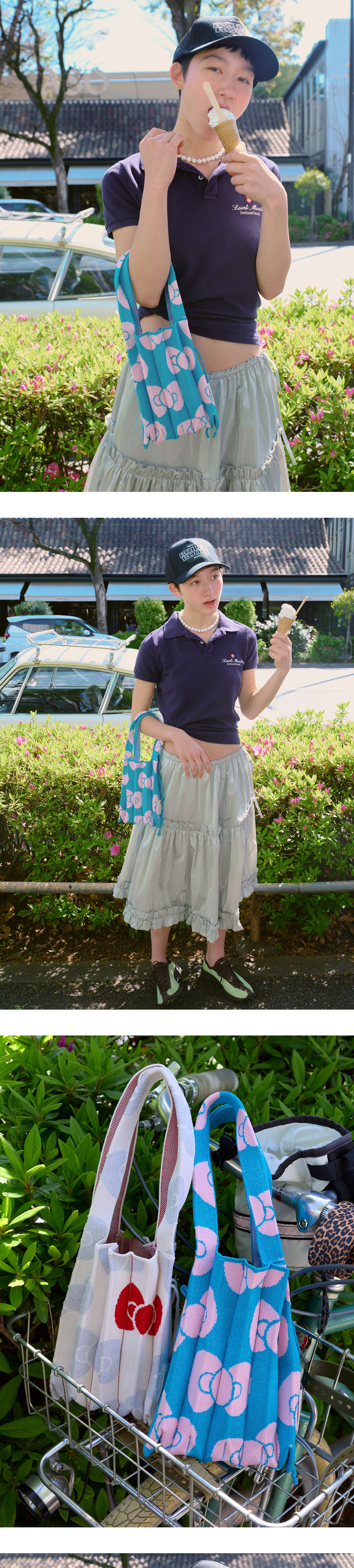 조셉앤스테이시 럭키 플리츠 니트 스몰 레오파드 헬로키티 롤리팝 블루