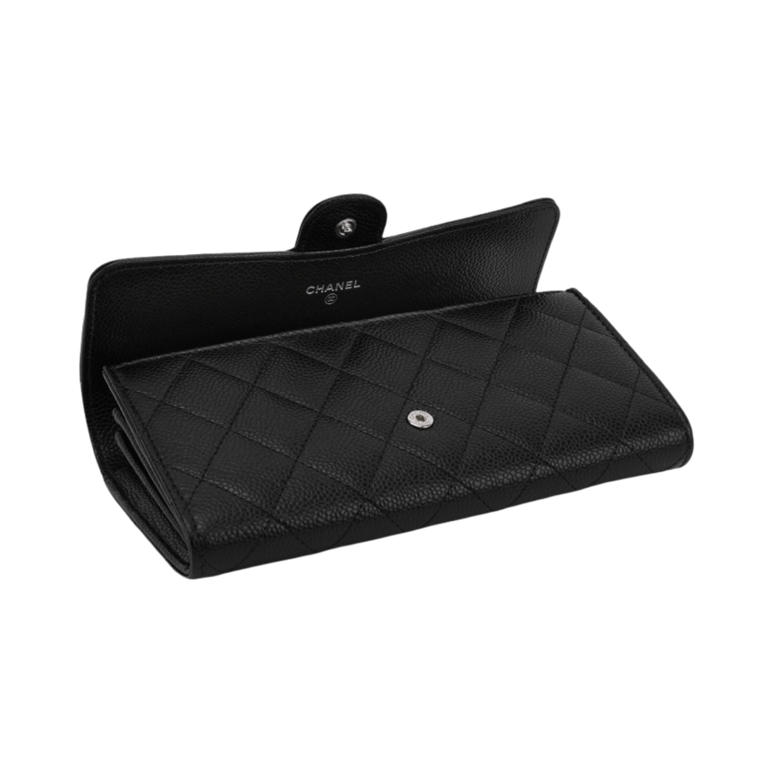 샤넬 클래식 롱 플랩 지갑 그레인드 카프스킨 & 실버 메탈 블랙