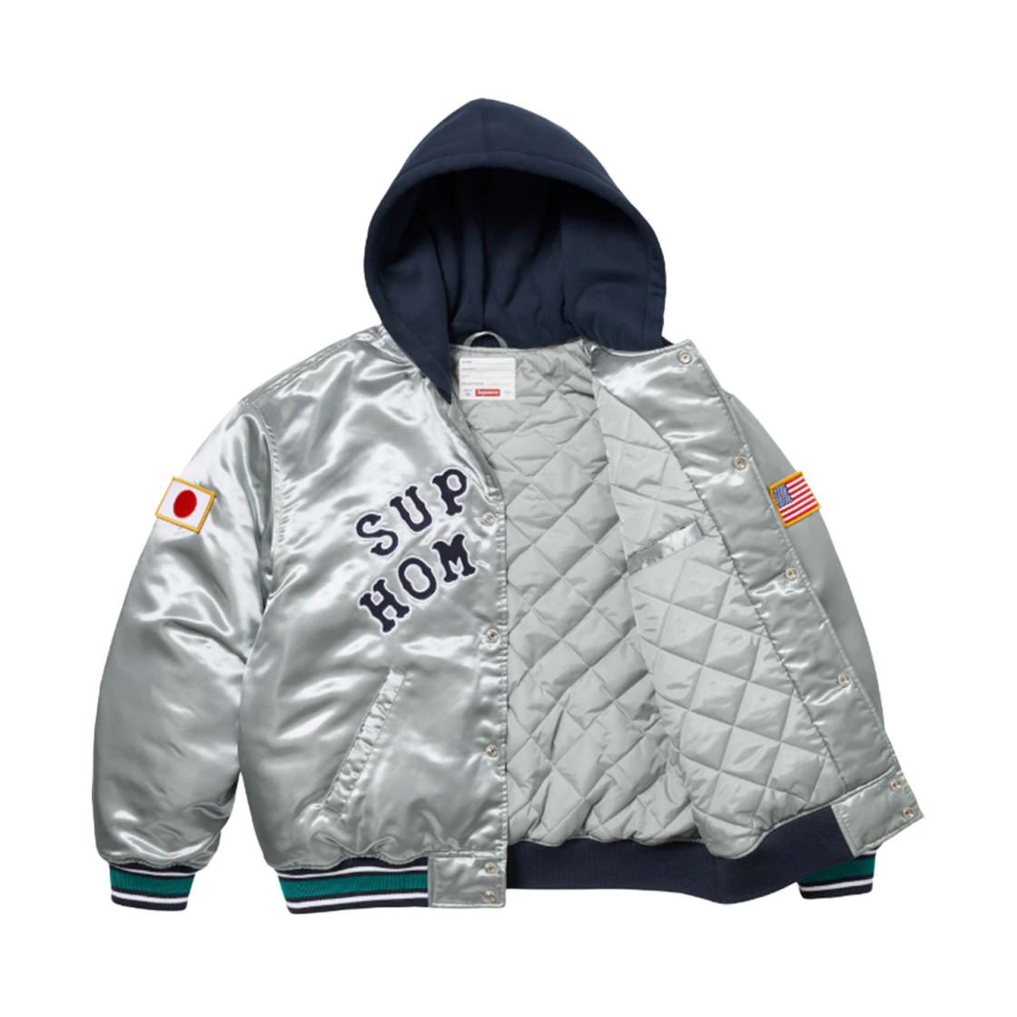 슈프림 x 홈런 사틴 후드 바시티 자켓 실버 - 25SS