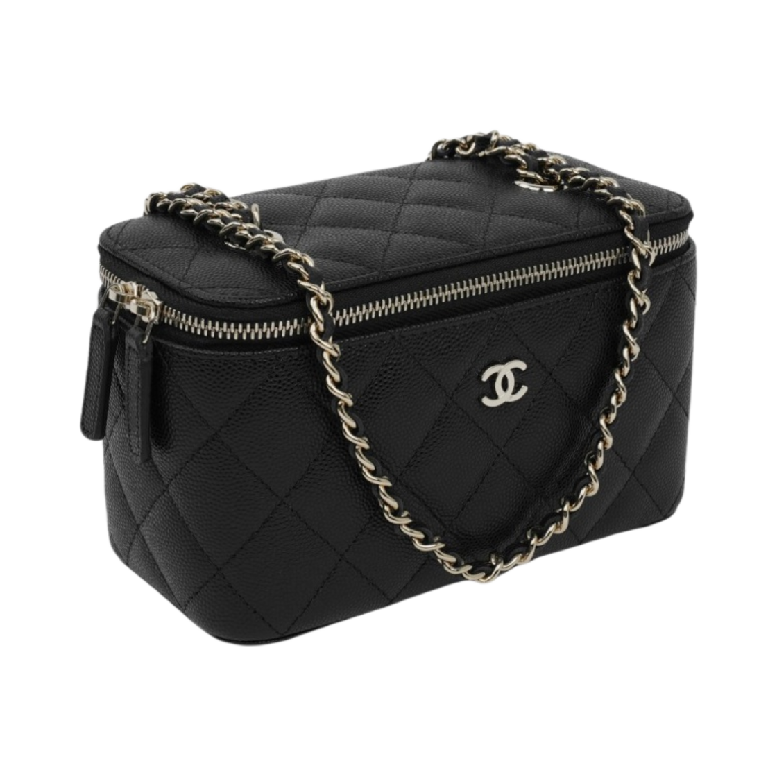 샤넬 클래식 스몰 체인 코스메틱 케이스 그레인드 카프스킨 & 골드 메탈 블랙