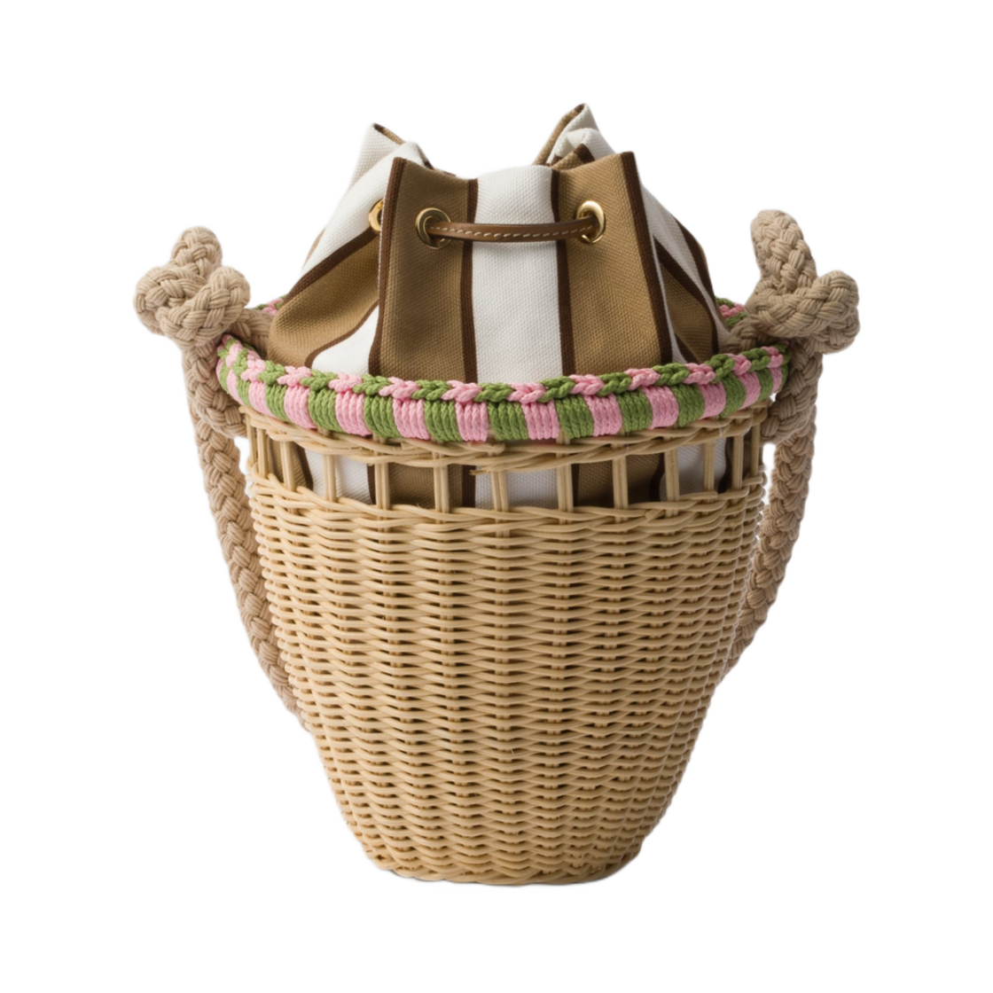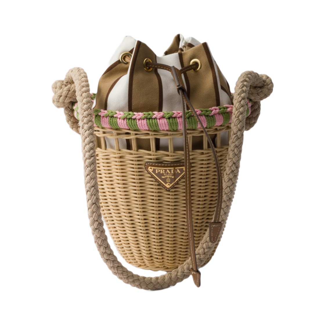 Prada Wicker Mini Bucket Bag Tan Petal Pink