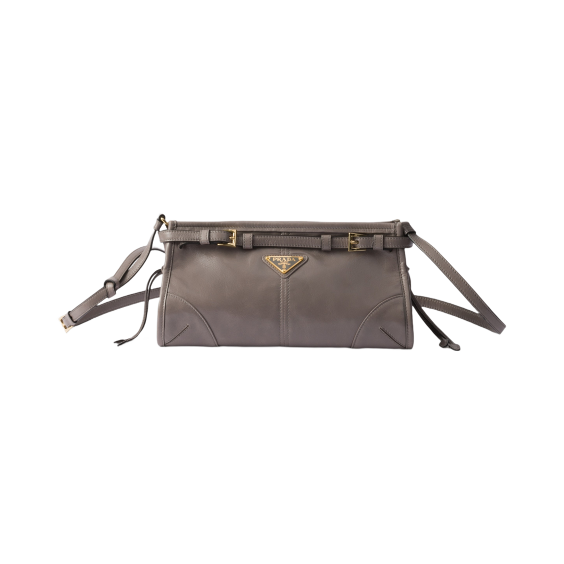 Prada Bonnie Small Leather Shoulder Bag Pewter
