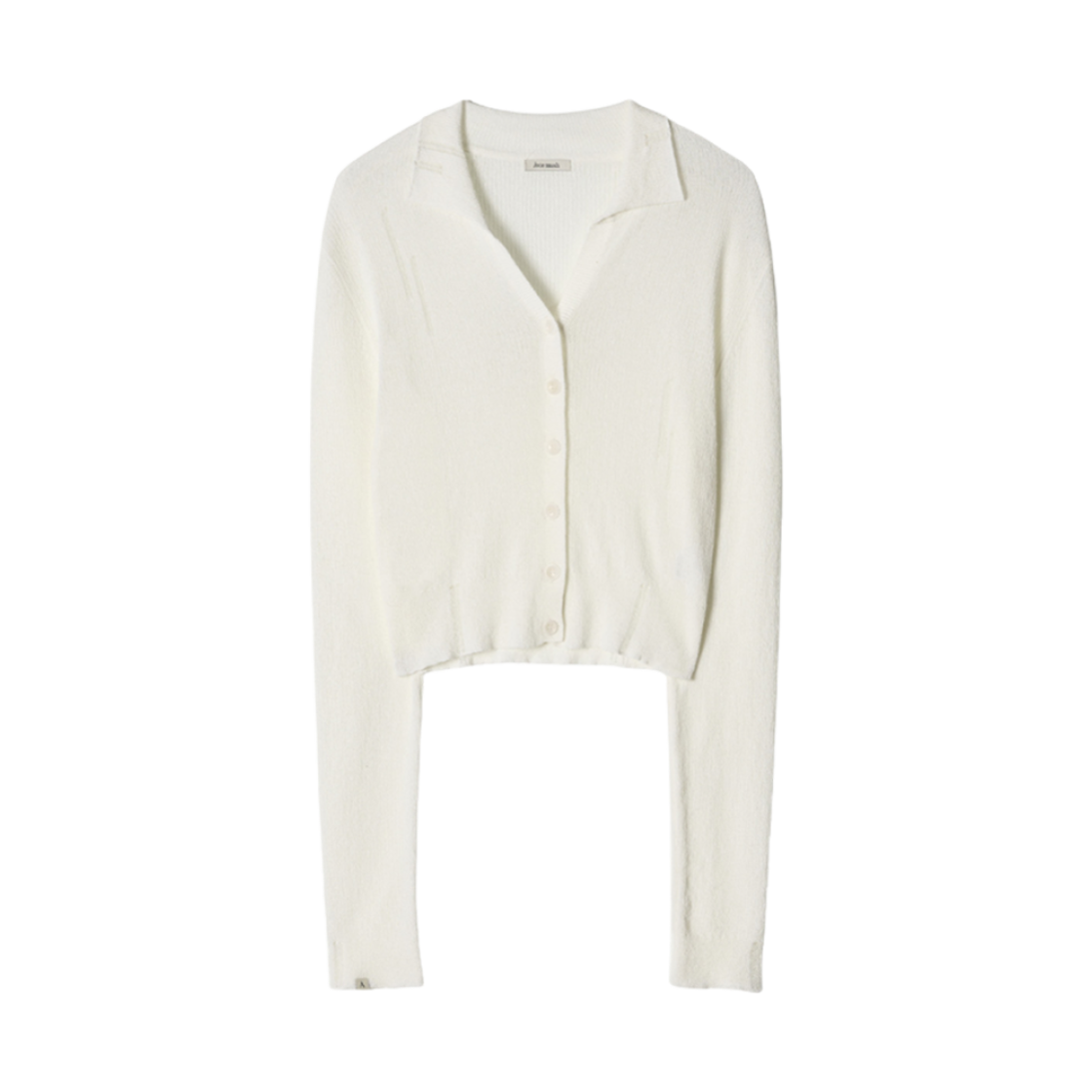 (W) Aviemuah Distressed Long Sleeve Collar Cardigan Ivory