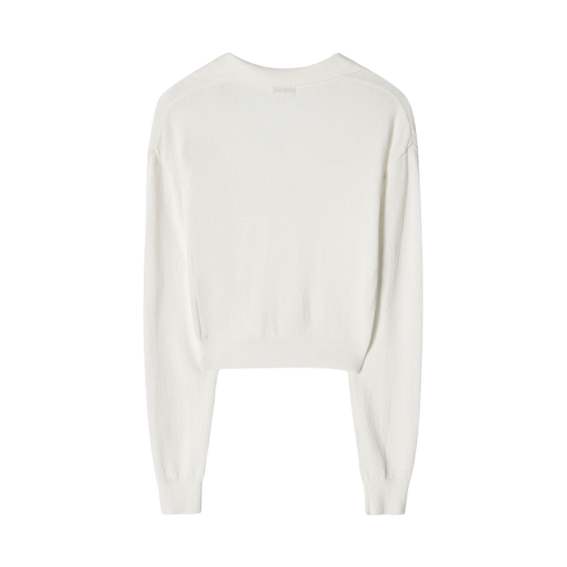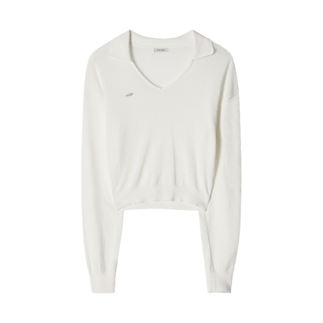 (W) Aviemuah Shea Deep V-Neck Colla Knitted Top White