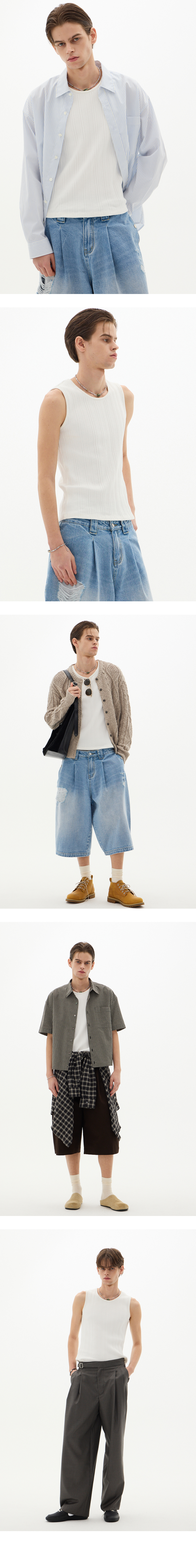 적당한 U라인의 절제된 슬리브리스 디자인 비대칭한 골지 조직의 조직감으로 매트한 실루엣 연출 균형잡힌 핏으로 단독 또는 레이어링 가능 컬러: 화이트 원단: 면 60% 폴리에스터 40% 일정 간격의 세로 골지 배열 바디에 가볍게 밀착되는 핏 단독 또는 레이어드 봄, 여름, 가을 적합한 두께 MODEL SIZE1 : 187cm / 65kg M SiZE - 측정 기준에 따라 1~2cm의 오차 범위가 발생할 수 있습니다. 주문 시 르아제 "라임바질만다린" 향을 박스 안에 분무하여 출고 합니다. 향을 싫어 하실 경우 배송 메세지 함에 향X 라고 기재 부탁드립니다.