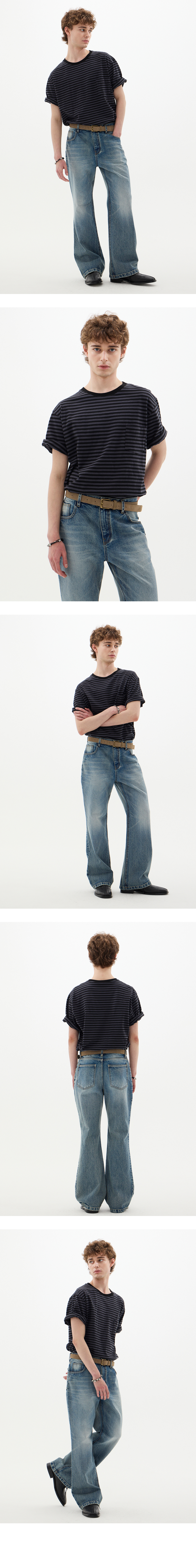 LEARVE Phantom Stripe Round T-Shirt Charcoal