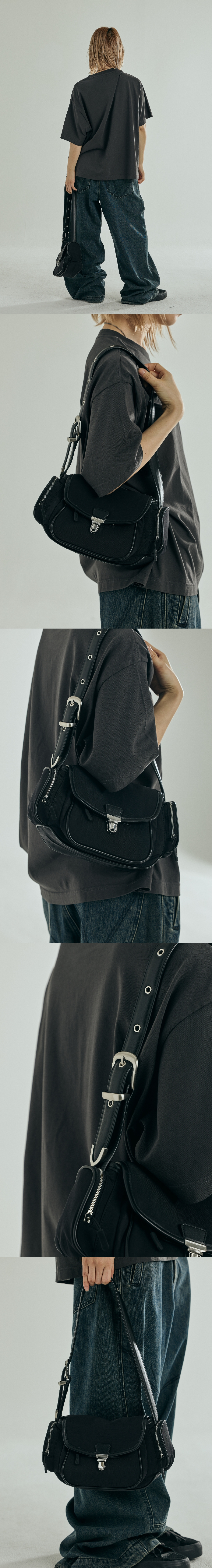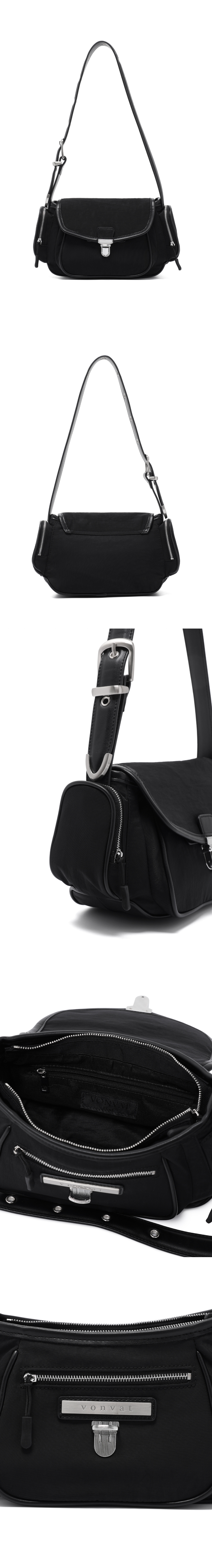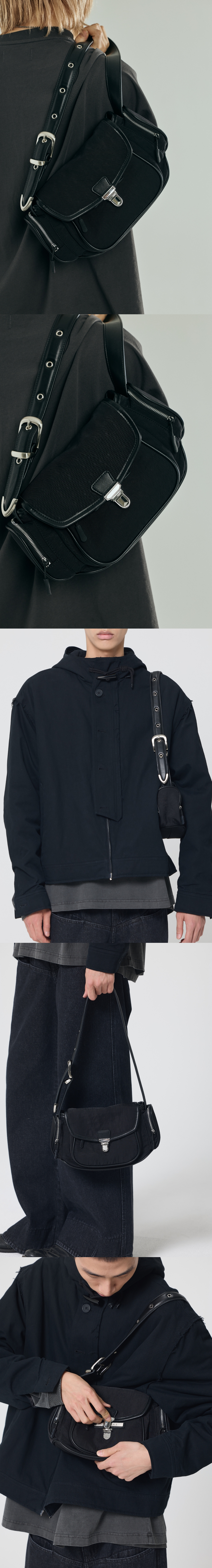 벨트끈 디테일 유니섹스 숄더백 - 메인소재는 나일론, 어깨끈은 페이크 레더 사용 - 어깨끈은 허리 벨트 디자인을 적용 - 본바트 개발 로고 금속라벨 사용 Shell - Nylon 100% Contrast - Polyurethan 100% 숄더백 FREE(0) : 너비 29.5, 높이 15.5, 폭 8.5
