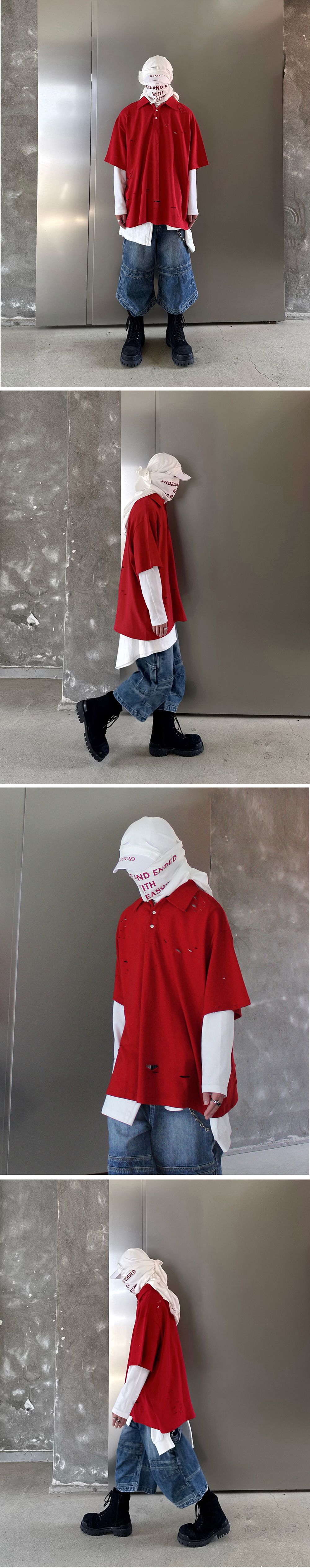 Fabric : 100% Cotton - 오버 핏 - 20's PK - 바이오 워싱 - 자개 단추 - 후면 레터링 프린트 - 핸드메이드 디스트로이드 작업 • 제조국 : 대한민국 • 세탁 방법 : 찬물 세탁 권장, 건조기 사용 금지 • 핸드메이드 제품으로 워싱 및 효과는 제품마다 상이 할 수 있음 Size Guide (단위 CM) M : 어깨 59, 가슴 78, 소매 26, 총장 78 L : 어깨 61, 가슴 81, 소매 27, 총장 80
