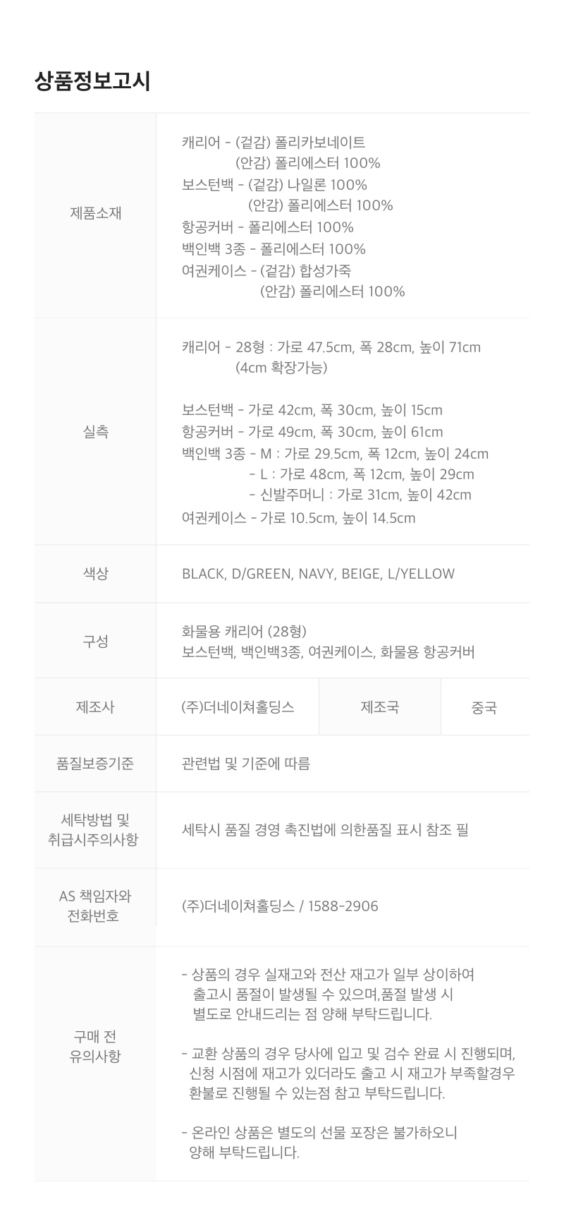 상품정보제공 고시