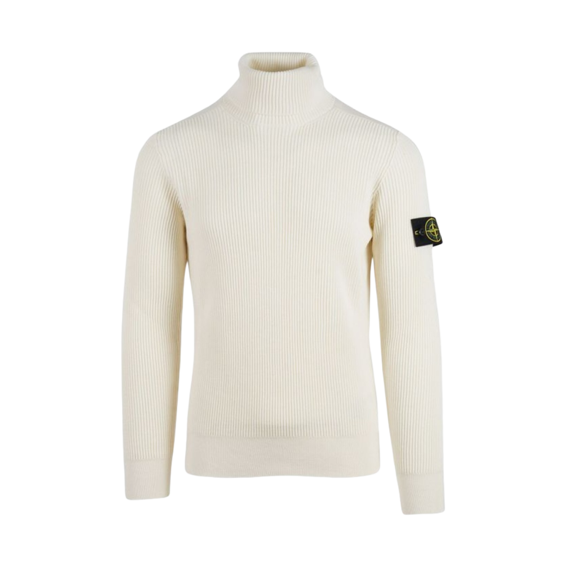 Stone Island 525C2 Full Rib Pure Wool Turtleneck Knit Off White - 21FW