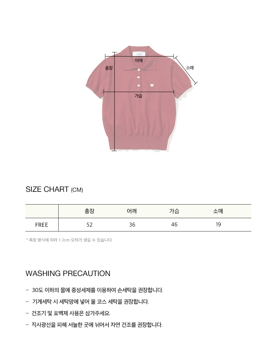 측정 방법에 따라 사이즈에 일부 오차가 있을 수 있습니다.