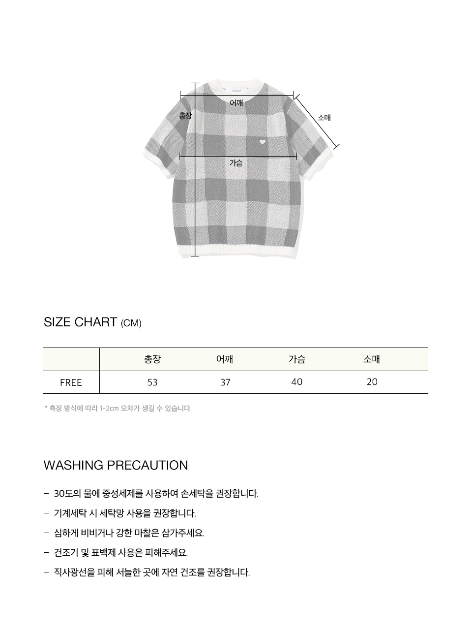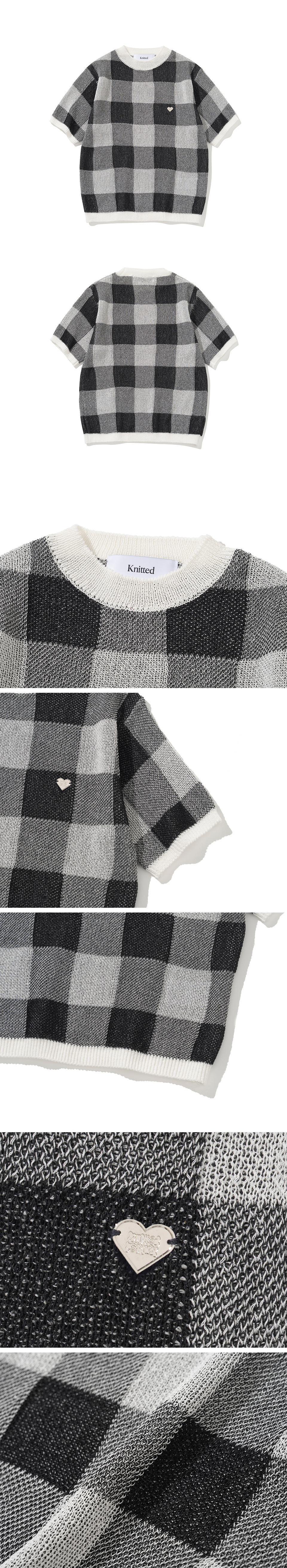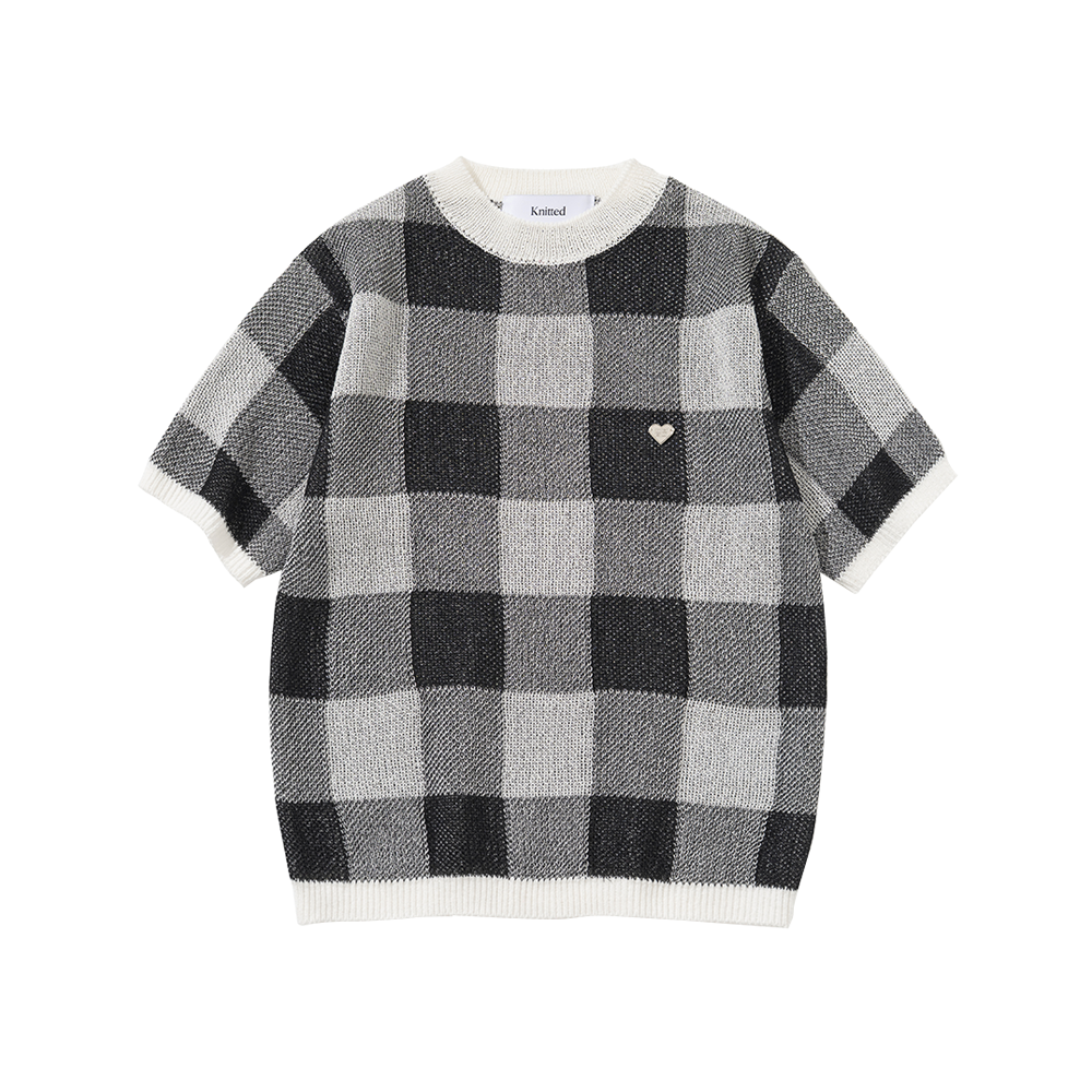 흡한속건 기능의 프리미엄 쿨에버 소재를 사용하여 제작되어 여름철 편안하게 착용 가능한 반팔 니트입니다. 베이직한 라운드넥 디자인에 체커보드 패턴을 더해 단품 착용만으로도 유니크한 무드를 연출해 줍니다. 드롭된 어깨 라인과 여유 있는 핏으로 디자인하였으며 늘어나기 쉬운 넥 라인과 소매, 밑단 부분은 1X1 립 조직으로 탄탄하게 제작되어 원형 복원력이 우수한 제품입니다.