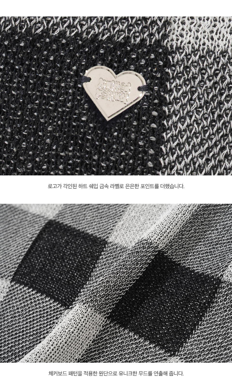 흡한속건 기능의 프리미엄 쿨에버 소재를 사용하여 제작되어 여름철 편안하게 착용 가능한 반팔 니트입니다. 베이직한 라운드넥 디자인에 체커보드 패턴을 더해 단품 착용만으로도 유니크한 무드를 연출해 줍니다. 드롭된 어깨 라인과 여유 있는 핏으로 디자인하였으며 늘어나기 쉬운 넥 라인과 소매, 밑단 부분은 1X1 립 조직으로 탄탄하게 제작되어 원형 복원력이 우수한 제품입니다.