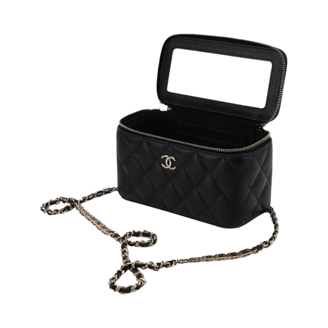 Chanel Vanity with Chain Grained Shiny Calfskin & Gold Black