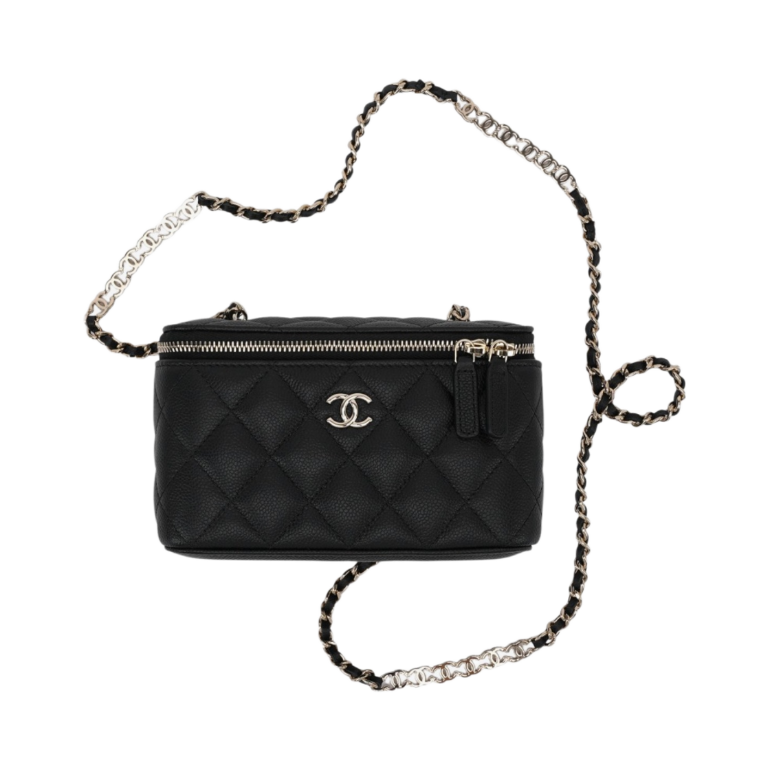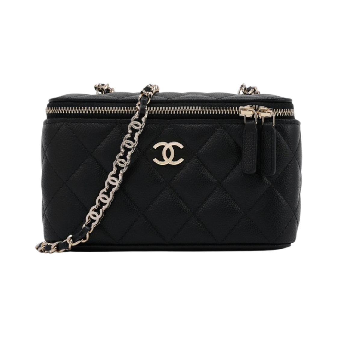 샤넬 체인 코스메틱 케이스 그레인드 샤이니 카프스킨 & 골드 메탈 블랙