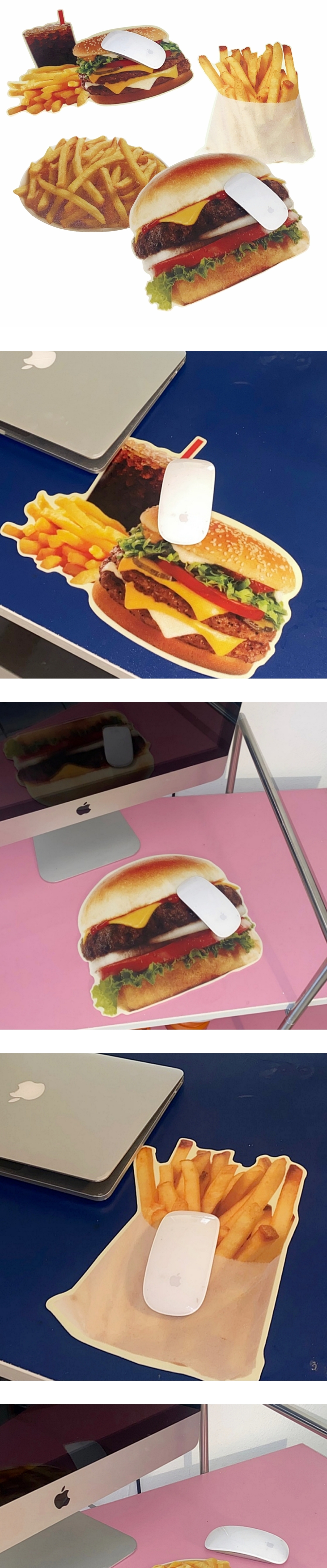 햄버거샵을 컨셉으로 한 마우스패드 입니다. 직무공간 또는 컴퓨터 책상위 포인트가 되며, 분위기 전환이 될 수 있는 마우스 패드로 추천드립니다. (기존 마우스패드 보다 크기가 큰편입니다. 상세페이지에 기재된 실측표 확인해주세요.)