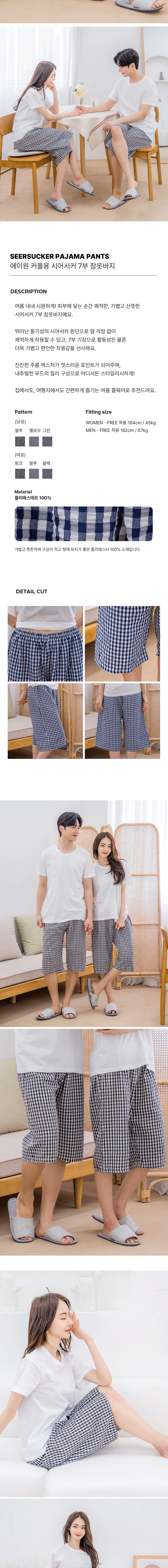 [3% 적립] AONE Unisex Seersucker 3/4 Pajama Pants Blue