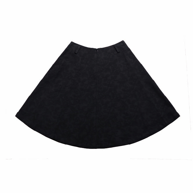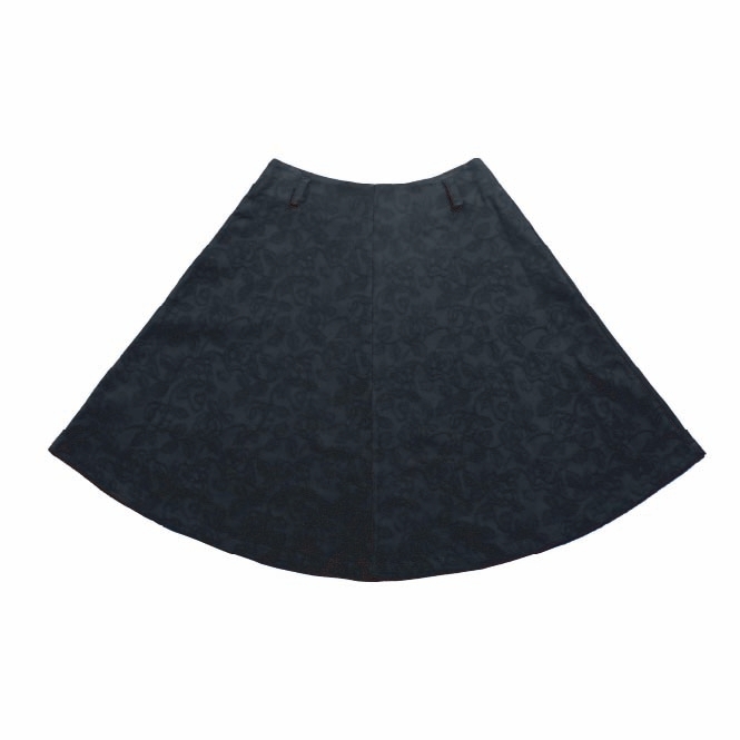 자카드 플레어 미디 스커트는 무릎까지 오는 미디 기장과 과하지 않은 플레어 주름이 매력적이며, 중앙의 절개선이 포인트가 되어 더욱 세련된 느낌을 줍니다. 허리단이 따로 없는 디자인으로 편안하게 착용 가능하며, 자연스럽게 흐르는 듯한 실루엣이 돋보입니다.