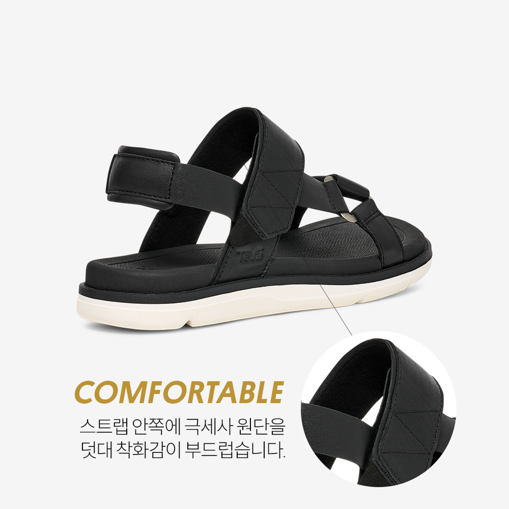 세련된 슬링백에 편안함을 더한 마데라 슬링백입니다. 프리미엄 가죽 소재 스트랩을 사용해 캐주얼과 고급스러운 스타일에 두루 매치하기 좋습니다. 피부에 닿는 면을 극세사 라이닝 처리해 부드러운 착화감이 특징입니다. 지지력 좋은 EVA 탑솔 쿠션과 가벼운 러버 아웃솔을 적용해 일상부터 야외 활동까지 함께하기 적합합니다.
