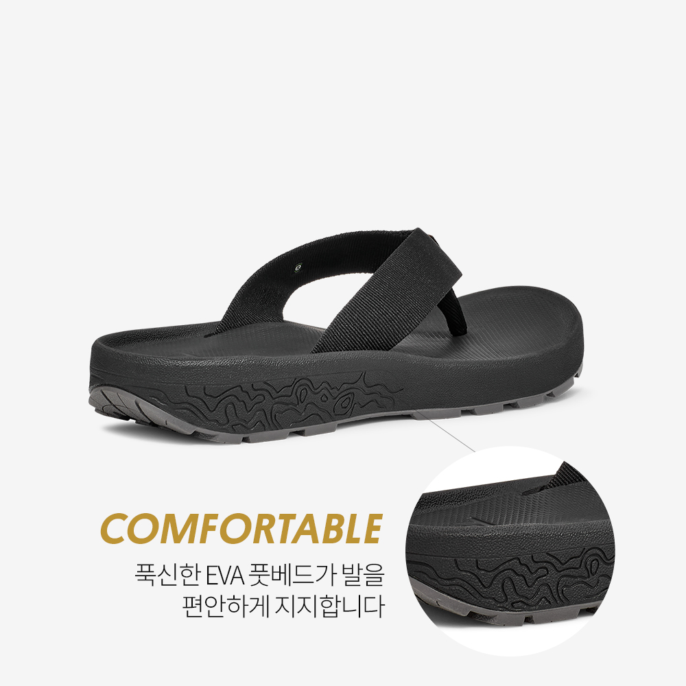 테바의 베스트셀러 하이드라트렉 샌들을 플립플랍 스타일로 선보입니다. UNIFI사의 재활용 폴리에스터로 만든 스트랩이 발의 습기를 제거해 쾌적한 착용감을 자랑합니다. 가벼운 EVA 미드솔로 무게를 줄였으며, 스트랩 안쪽에 패딩 소재를 덧대 발이 더욱 편안합니다. 비오는 날에도 우수한 접지력을 발휘하는 스파이더 러버 아웃솔과 안전한 여름 모험을 시작하세요.