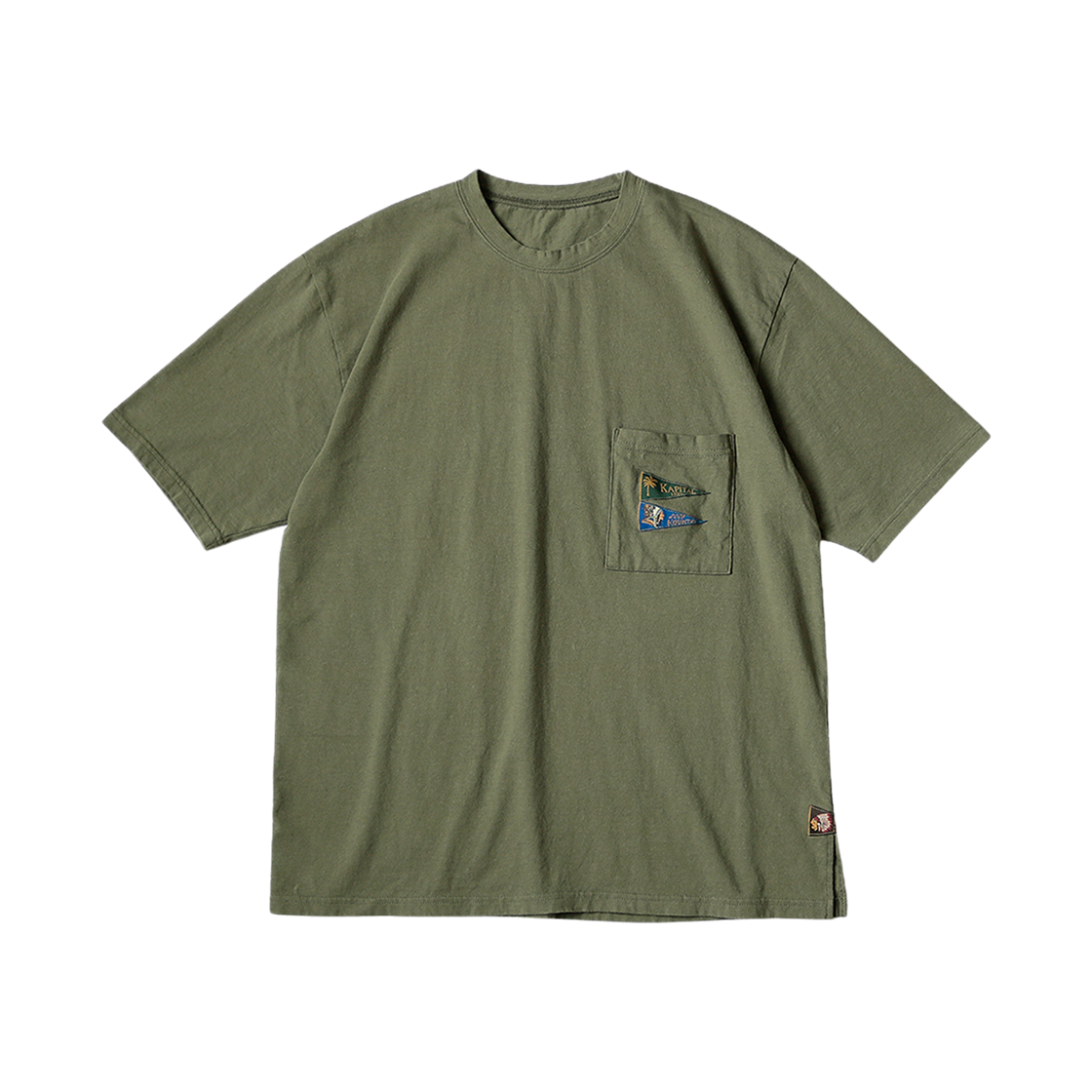 Kapital 20 Jersey Pennant T-Shirt 3 Flags Khaki
