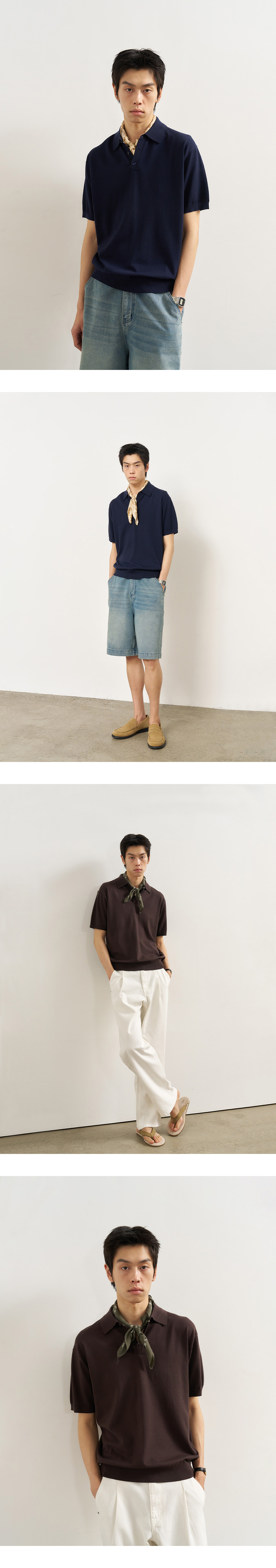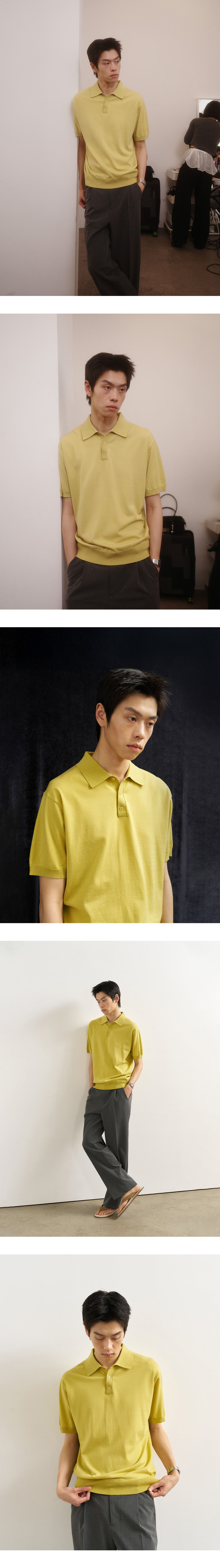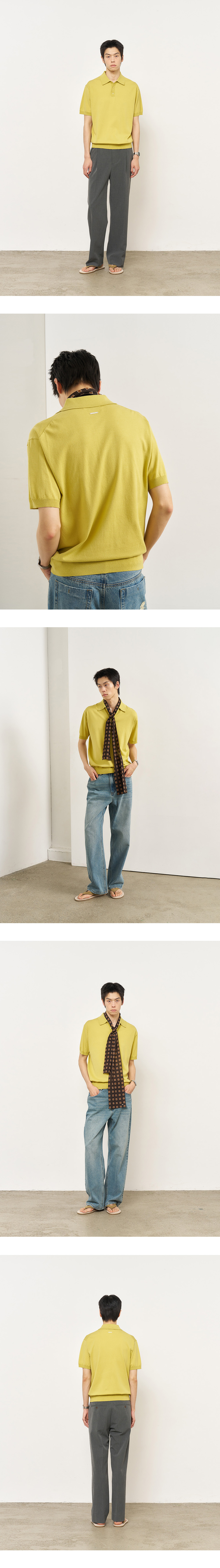 제너럴아이디어 맨 에센셜 카라넥 하프 니트 머스타드