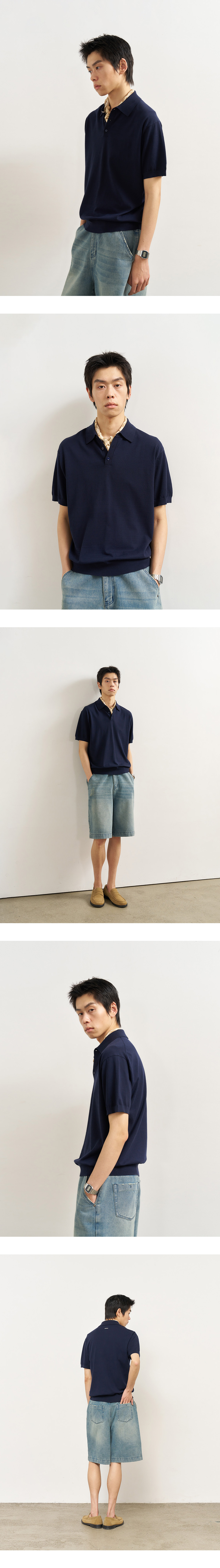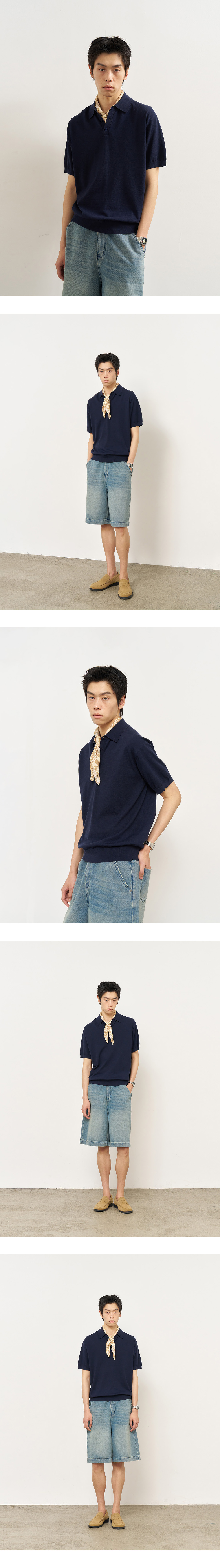 제너럴아이디어 맨 에센셜 카라넥 하프 니트 네이비