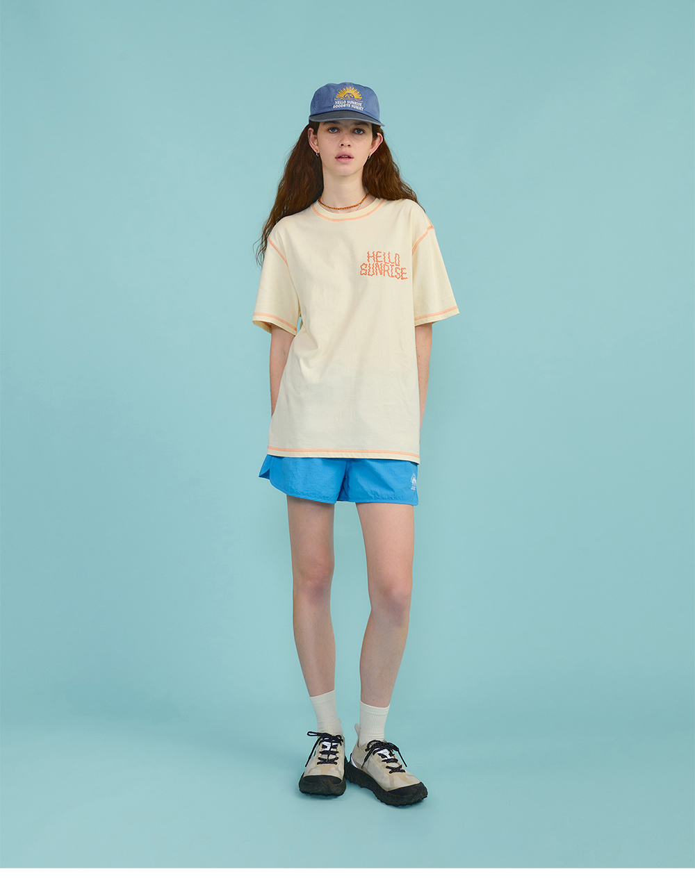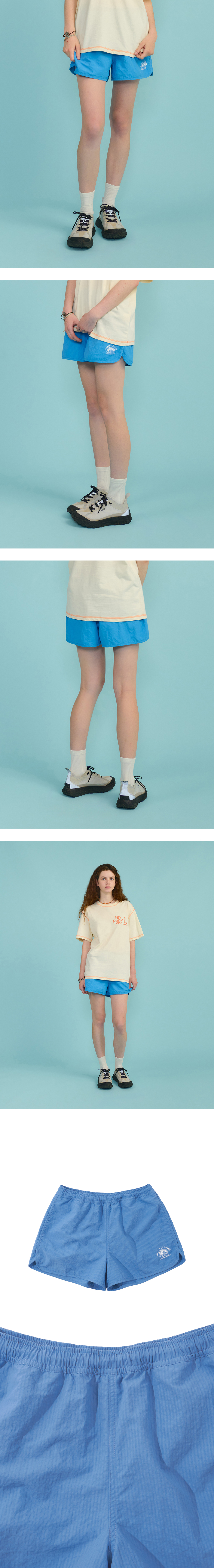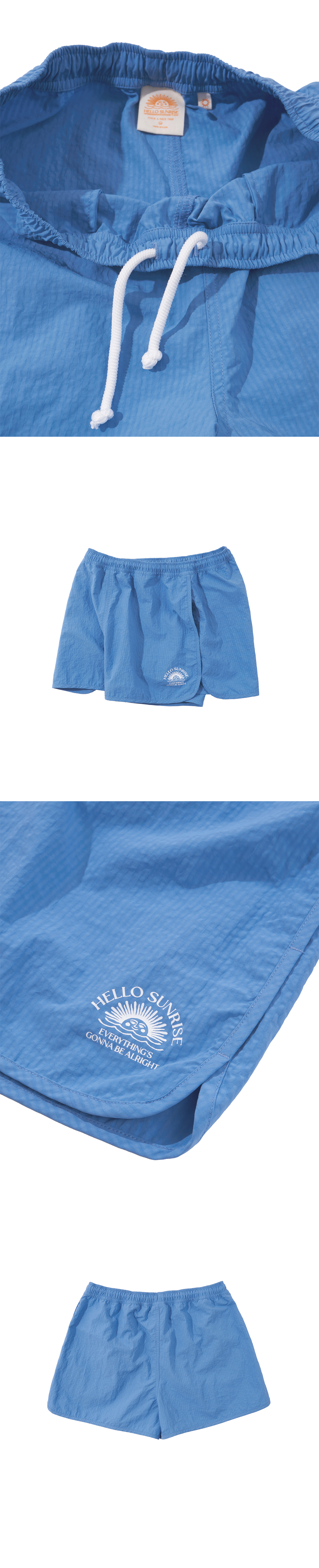 Hello Sunrise 레귤러핏의 짧은 기장감의 여성용 워터숏츠입니다. - 잔잔한 스트라이프 패턴이 들어간 소재 사용 - 전면 OG 아치로고 그래픽 나염처리 - 양쪽 사이드 포켓 - 허리 스트링으로 사이즈 조절 * Model : 177cm / Size : OS * 측정 기준에 따라 1-2cm의 차이가 있을 수 있습니다. * Nylon 100% Made in China