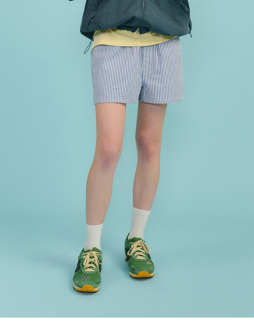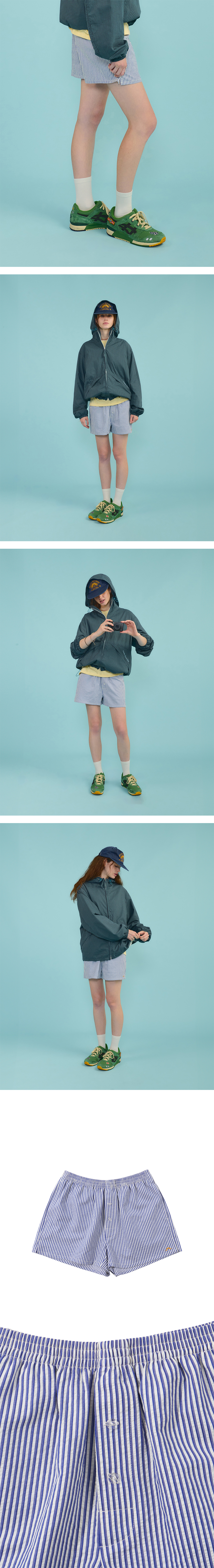 Hello Sunrise 짧은 기장감의 여성용 복서 쇼츠입니다. - 스트라이프 패턴이 들어간 코튼 소재 사용 - 전면 심볼로고 그래픽 자수처리 - 양쪽 사이드 포켓 - 허리 밴드 사용으로 편안한 착용 * Model : 177cm / Size : OS * 측정 기준에 따라 1-2cm의 차이가 있을 수 있습니다. * Cotton 100% Made in China