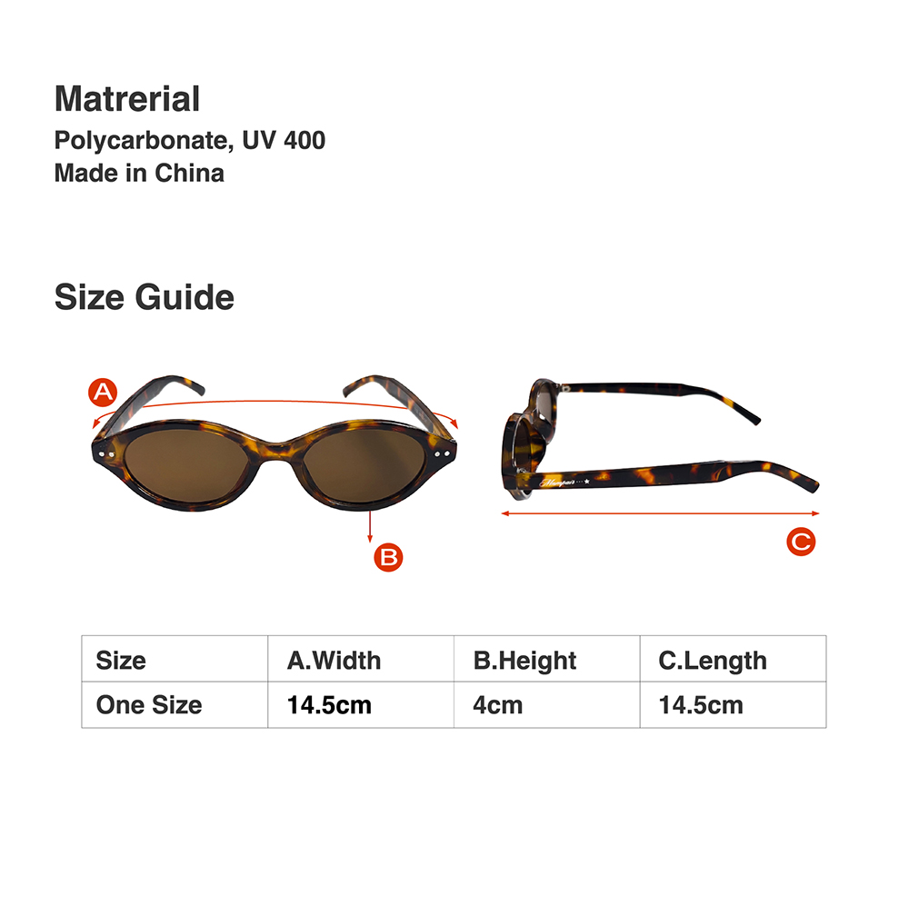 - 클래식하고 슬림한 오벌 쉐입 - 옆면 ‘MNMPAIR’ 로고 - 선글라스 케이스, 클리너, 상자 포함 - 폴리카보네이트 소재 - UV 400으로 자외선 차단 - 22g의 가벼운 무게