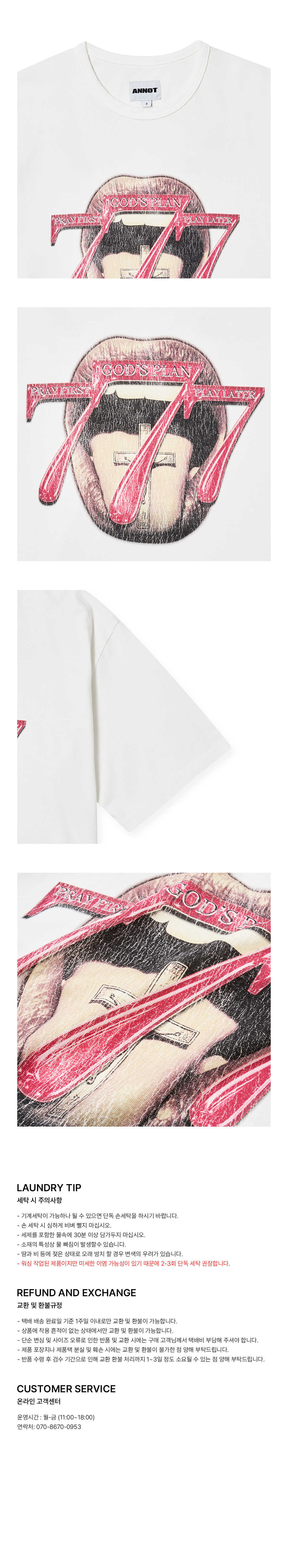 아노트 777 워시드 티셔츠 오프 화이트