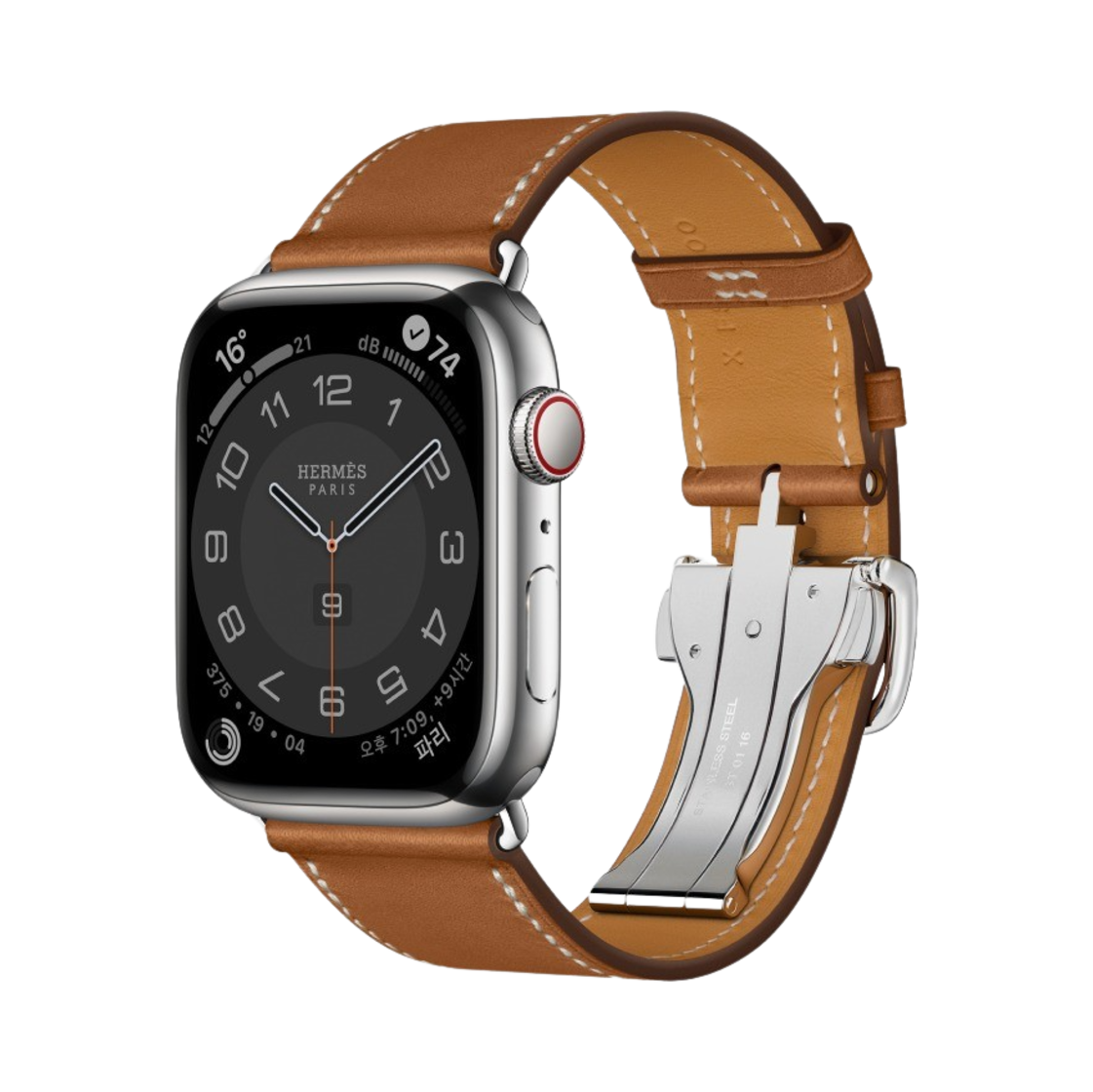 애플 워치 7 에르메스 45mm 실버 스테인리스 스틸 케이스 싱글 투어 디플로이먼트 버클 포브 (국내 정식 발매 제품)