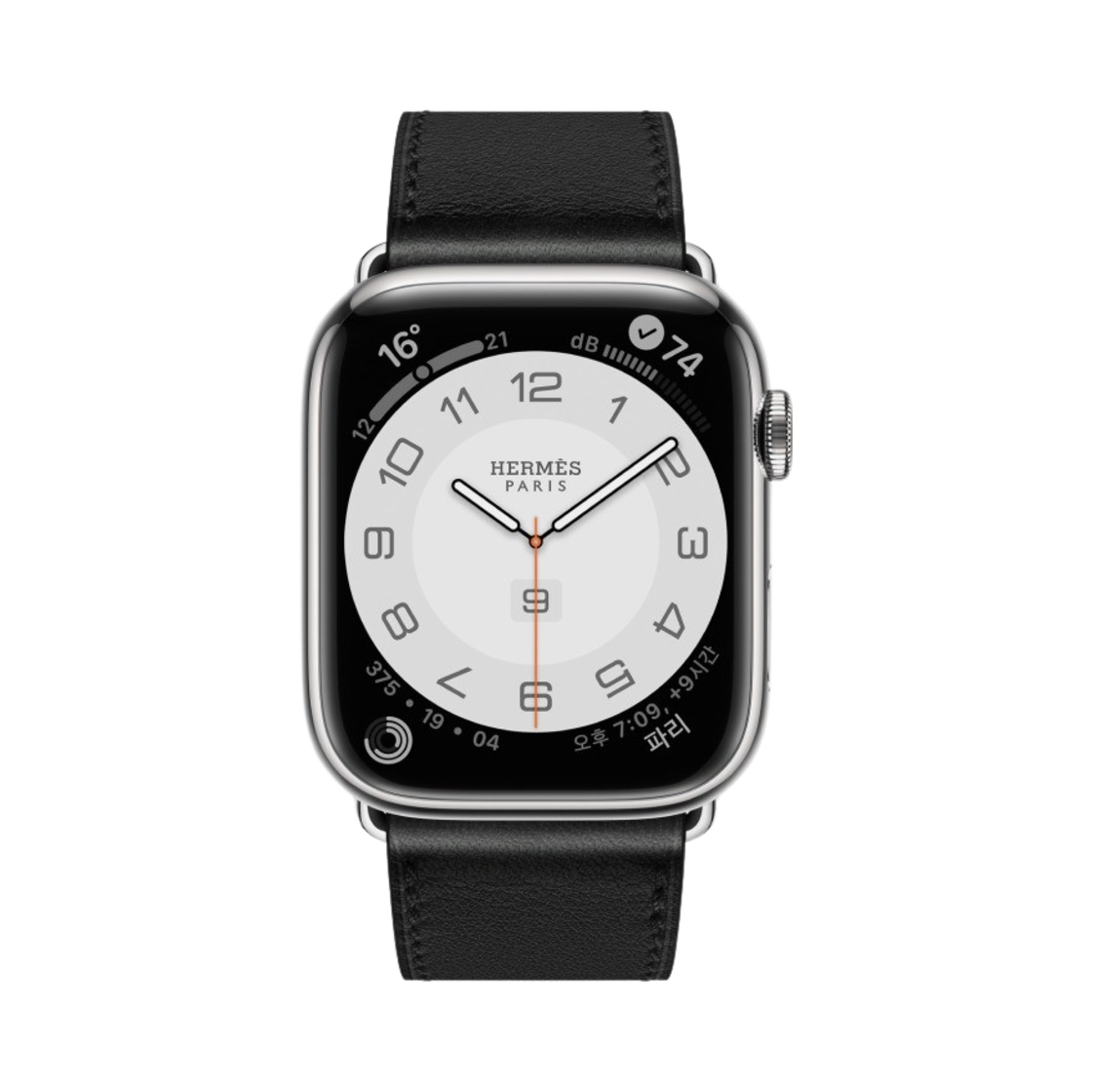 애플 워치 7 에르메스 45mm 실버 스테인리스 스틸 케이스 싱글 투어 디플로이먼트 버클 누아 (국내 정식 발매 제품)