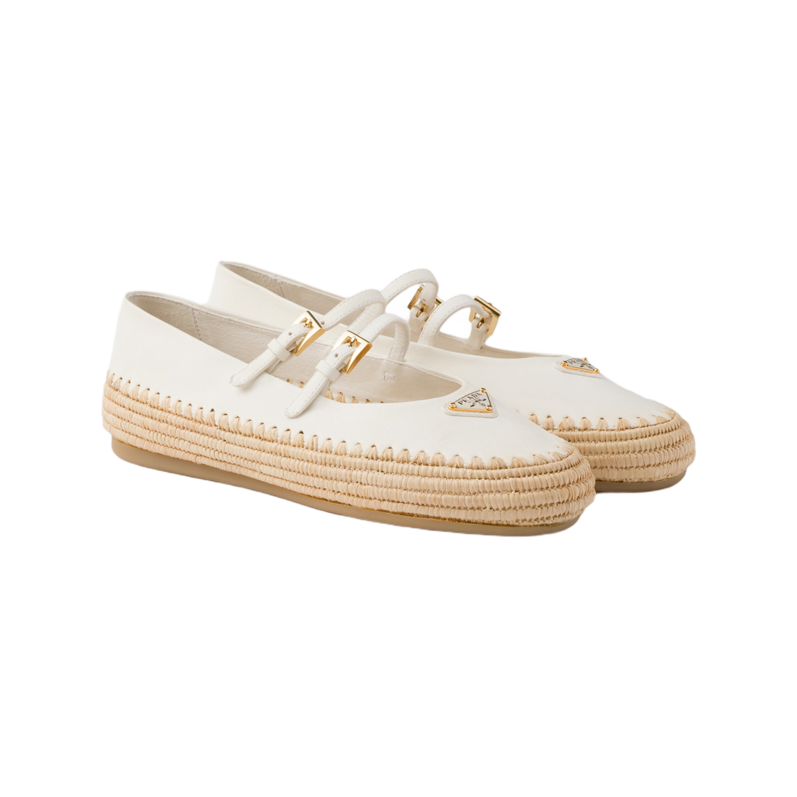 (W) 프라다 나파 레더 앤 라피아 발레리나 아이보리