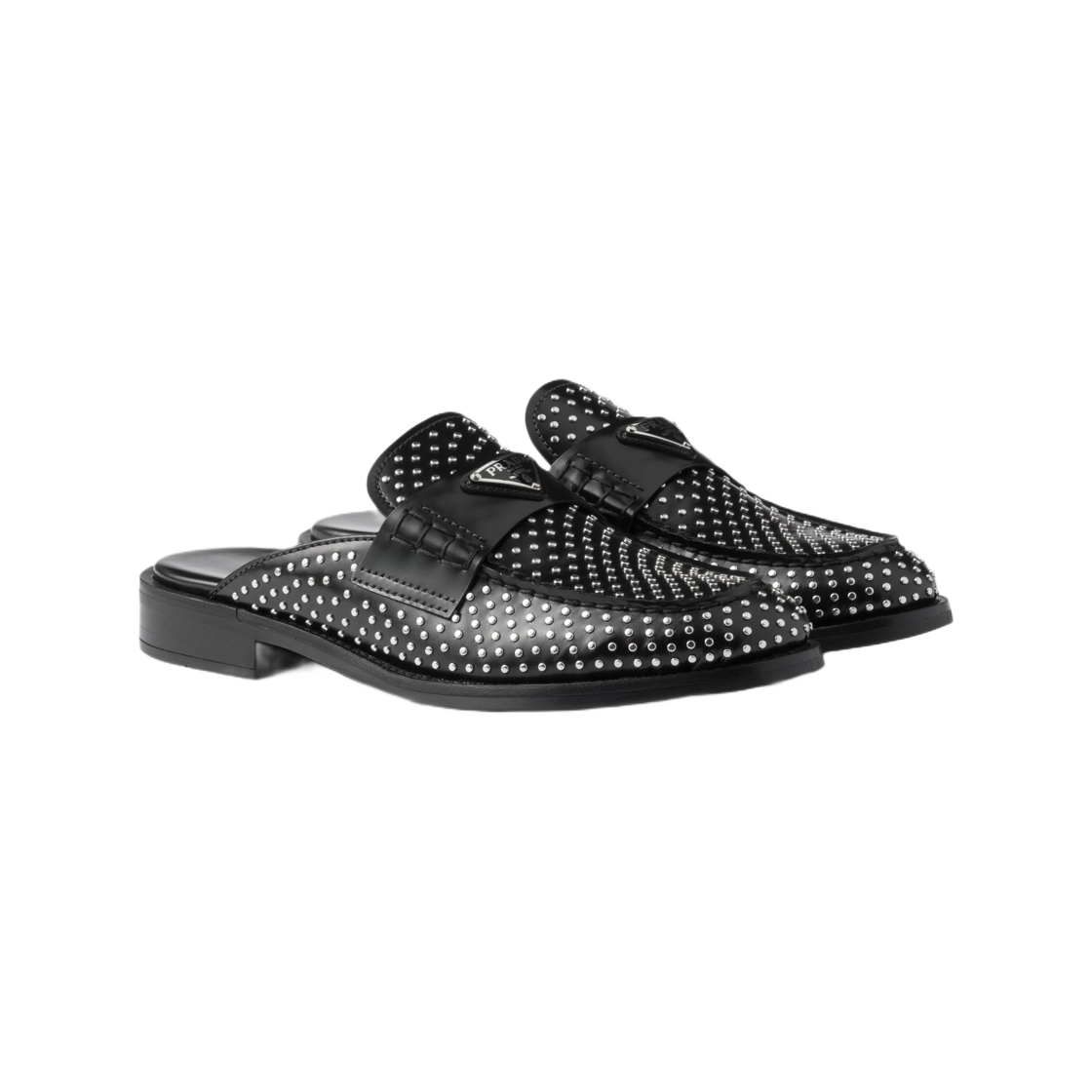 (W) 프라다 스터드 브러쉬드 레더 뮬 블랙