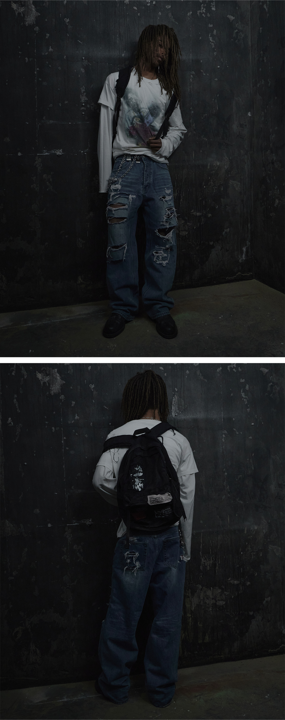 컷아웃,데미지 디테일의 경우 수작업으로 이루어 지기 때문에 개체 차이가 존재 합니다. 해당 디테일은 늘어나거나 찢어지지 않게 세탁시 주의가 필요 합니다.