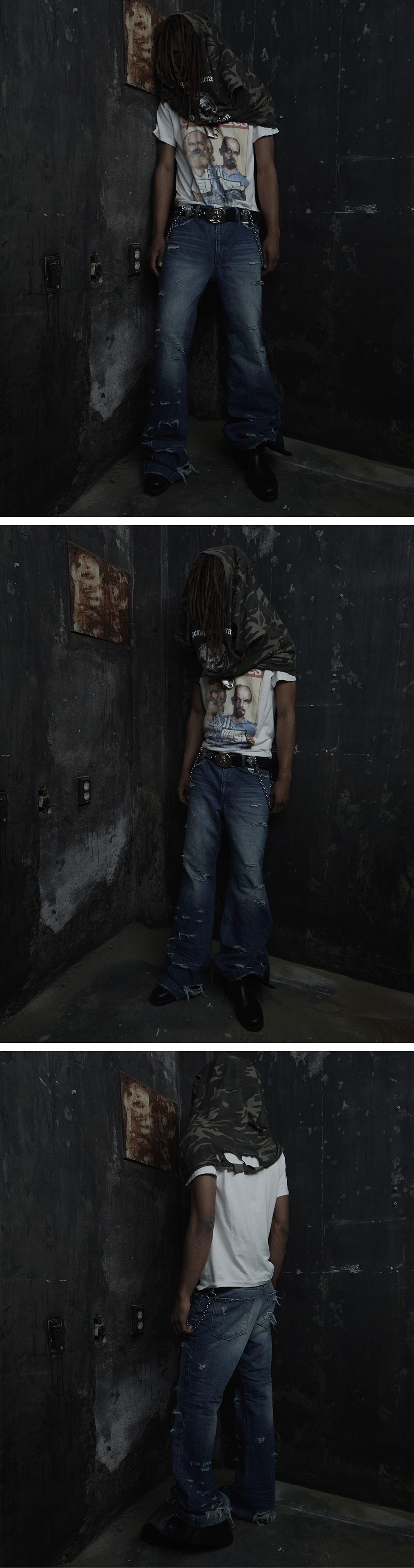 컷아웃,데미지 디테일의 경우 수작업으로 이루어 지기 때문에 개체 차이가 존재 합니다. 해당 디테일은 늘어나거나 찢어지지 않게 세탁시 주의가 필요 합니다.