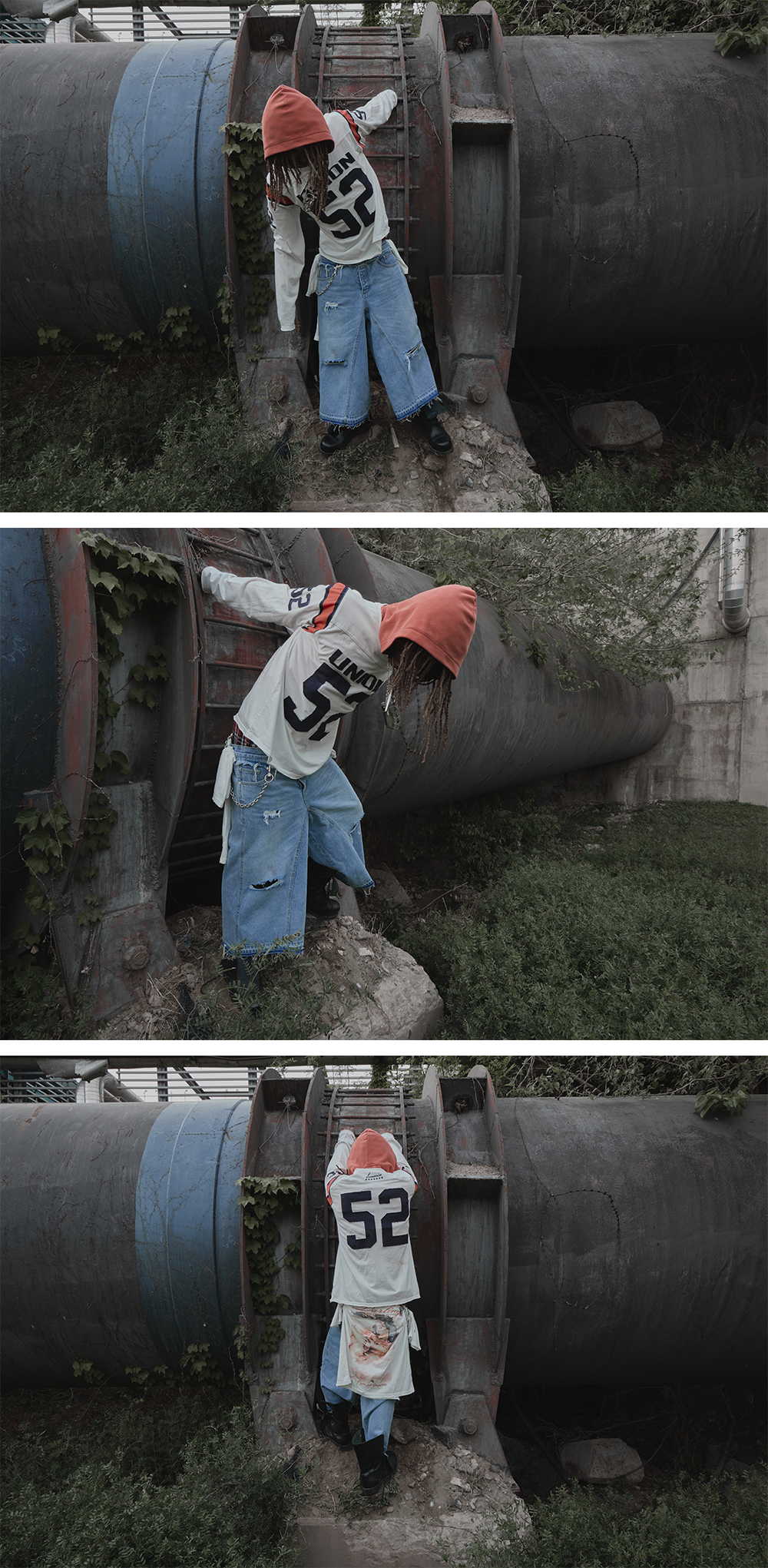 컷아웃,데미지 디테일의 경우 수작업으로 이루어 지기 때문에 개체 차이가 존재 합니다. 해당 디테일은 늘어나거나 찢어지지 않게 세탁시 주의가 필요 합니다.
